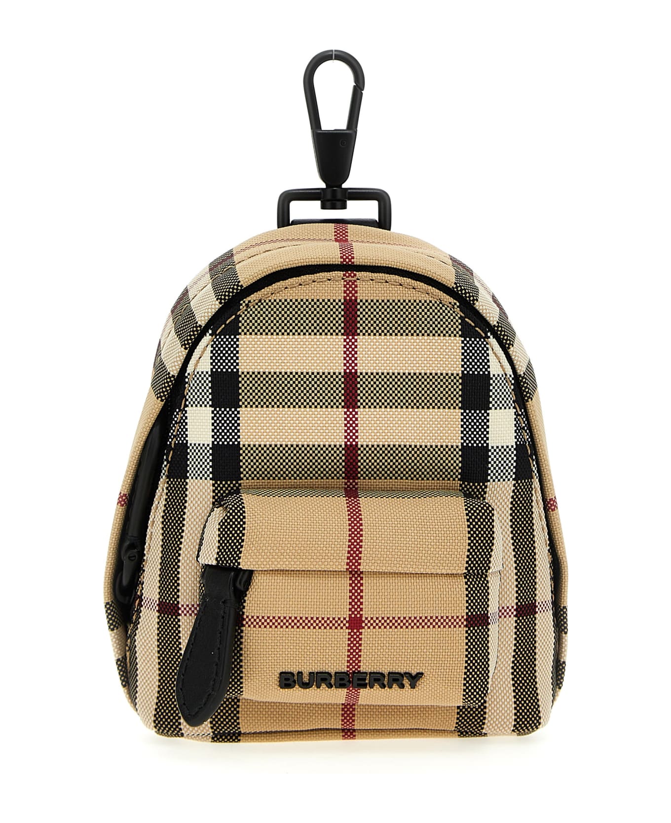 Mini Jett' backpack-shaped keyring in a check print fabric with leather details, zip closure, key hook-and-eye closure. Composition: 100% polyamide