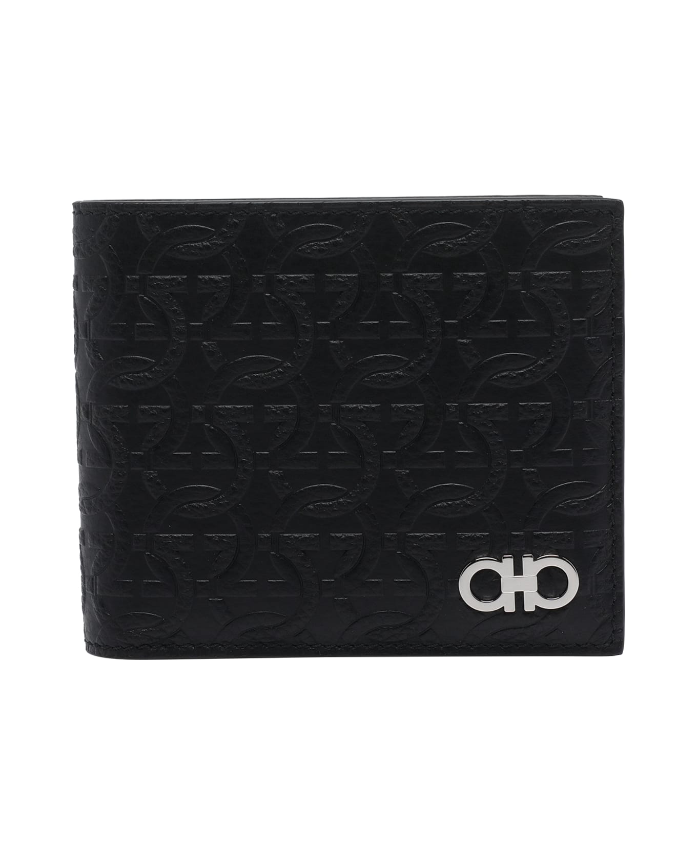 Ferragamo black wallet, 8 slots, one compartment for banknotes, logo Composition: 100% Calf Leather