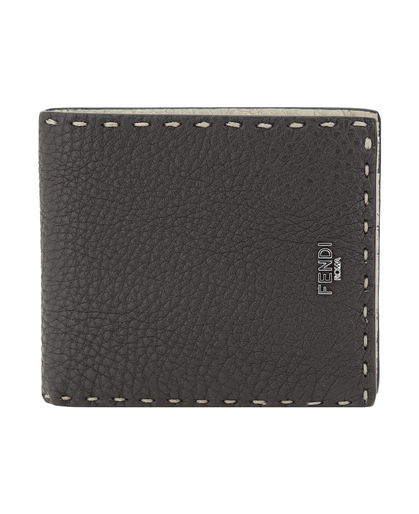 Fendi's selleria wallet is an elegant and refined accessory made of grained leather that gives a rich and durable texture. the bifold design is practical and functional, with one bill compartment and eight card slots, ideal for keeping everything in order. meticulously crafted exposed stitching adds a touch of craftsmanship and visually interesting detail. the brand's iconic signature, press-stamped on the front, lends a distinctive and discreet sign of luxury, making the wallet instantly recognizable.