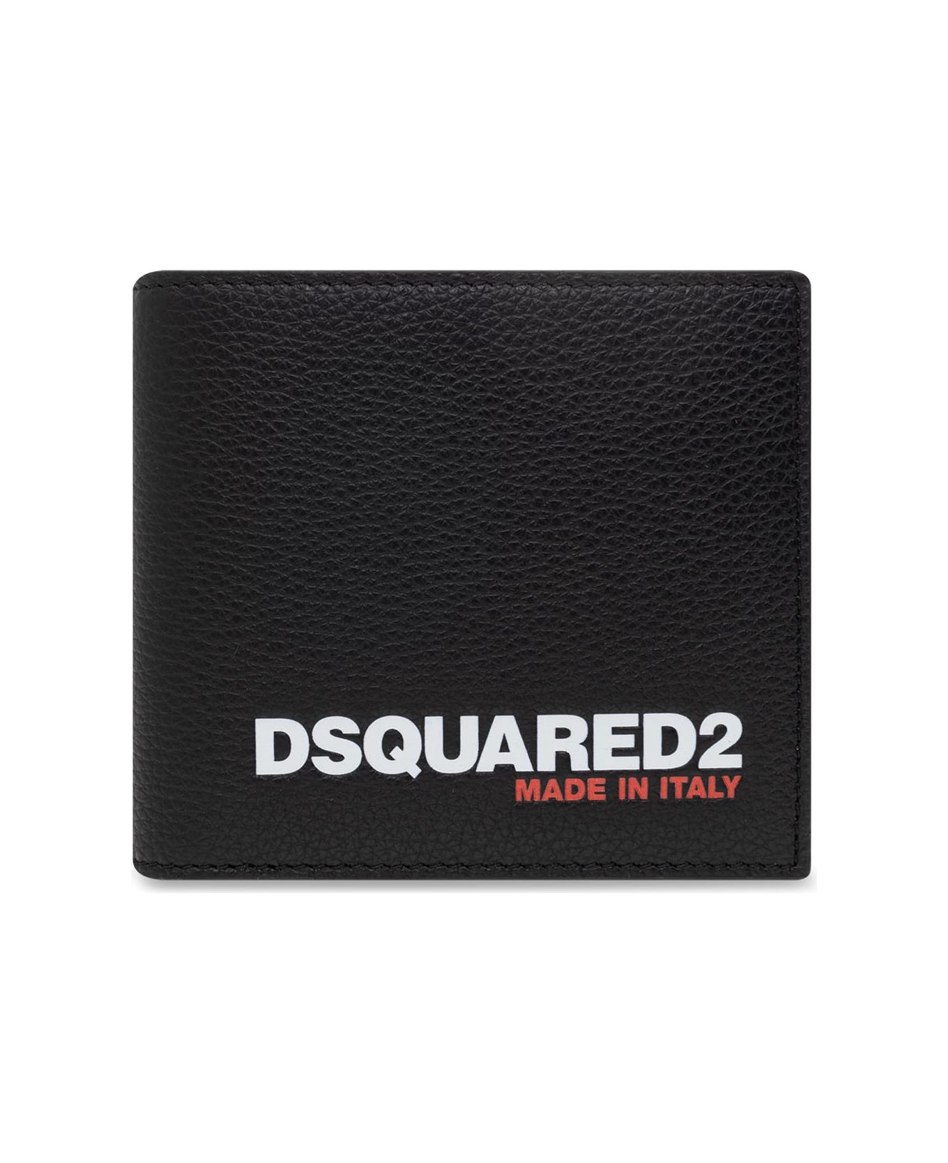Black wallet from Dsquared2. Made of calf leather, this item showcases a white and red graphic print with the brand's logo. It is complete with four card slots, two slip pockets and gussets for bills and coins inside.