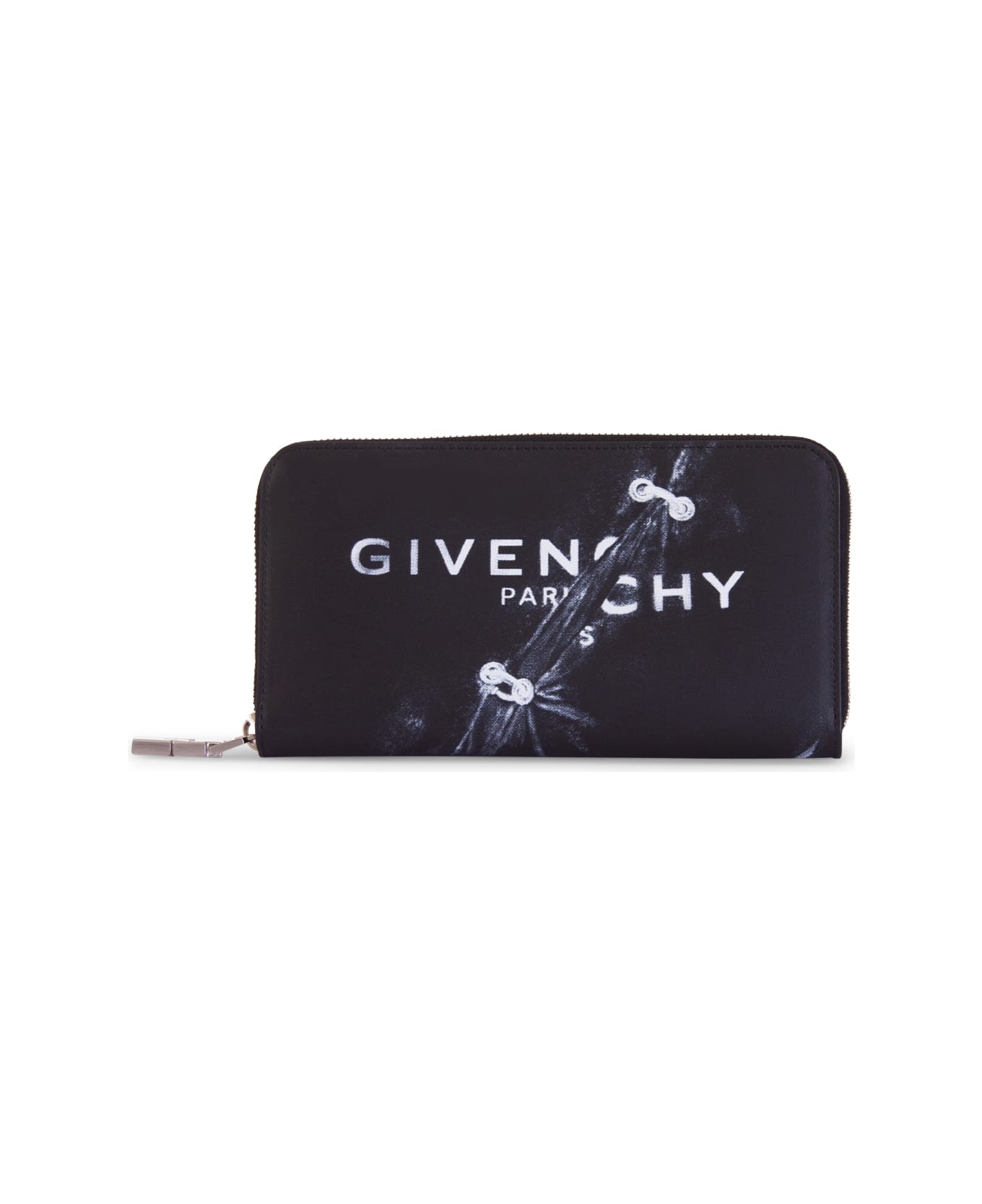 Givenchy wallet made of smooth leather decorated with the iconic logo printed in contrast with the trompe l' il effect. Silver-colored metal and zip-around closure The interior lined in leather / fabric features separate compartments from a zip pocket, two flat pockets and twelve card slots Composition: calfskin Cm 19x10x2 Made in Italy