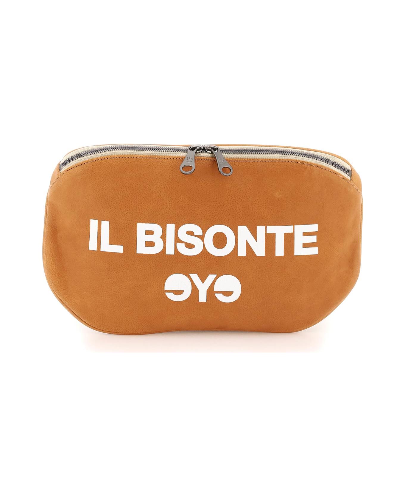 Beltpack by JUNYA WATANABE in collaboration with Il Bisonte, crafted in soft leather with contrasting logo print on front. Adjustable fabric shoulder strap with metal buckle with engraved logo, double-way zip closure, fabric lining and one inner zippered flat pocket. Ruthenium-finished metalware.