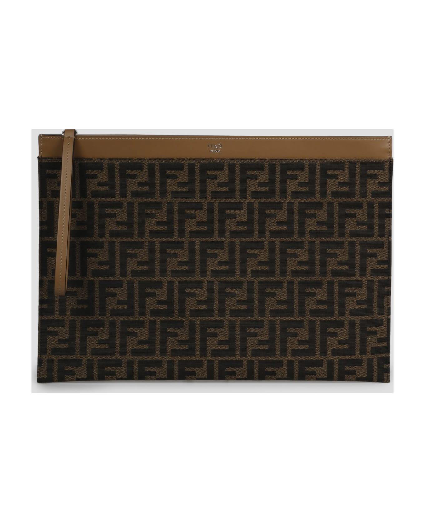 Fendi flat pouch in jacquard FF motif fabric and leather trims. - Large size