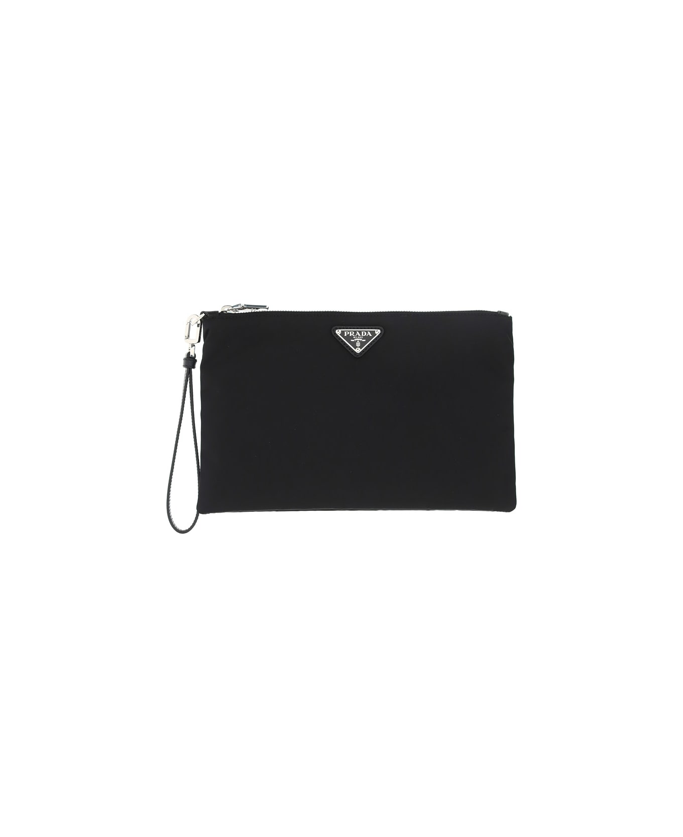 Re-nylon beauty case by prada, top zipper closure, triangular logo plaque affixed to front, removable puller affixed to side panel. Composition: 100% % Polyamide