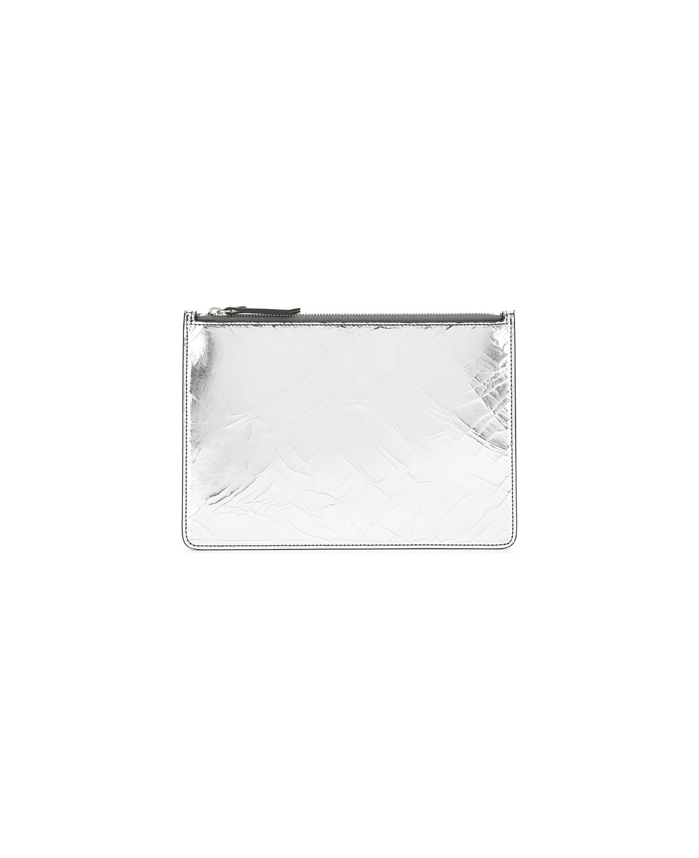 Mainson Margiela pouch in cracked metallic leather. Zippered closure with leather zip puller and lined interior.