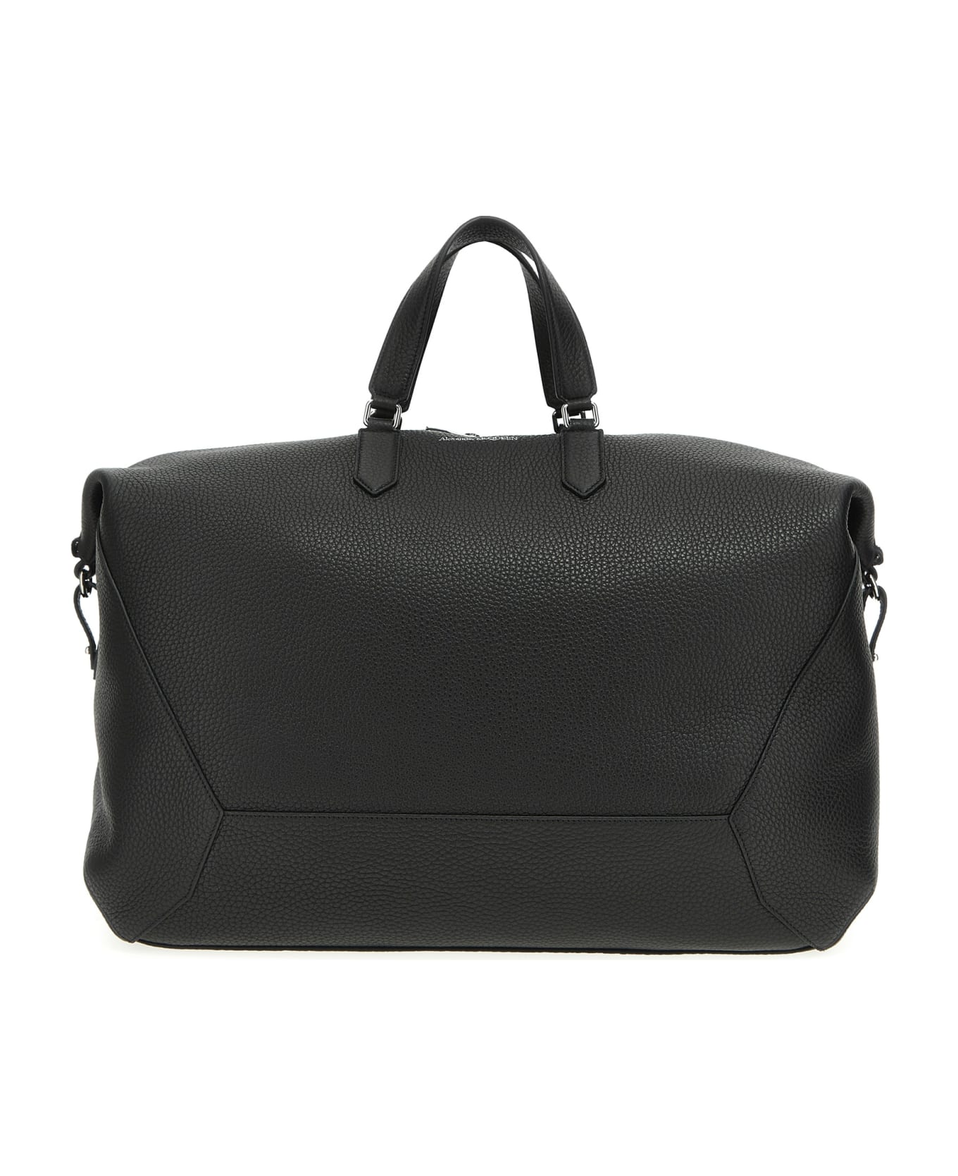 'The Edge' full-grain natural leather duffel bag, double top handle, adjustable and removable leather shoulder strap, and front logo. Composition: 100% calfskin leather
