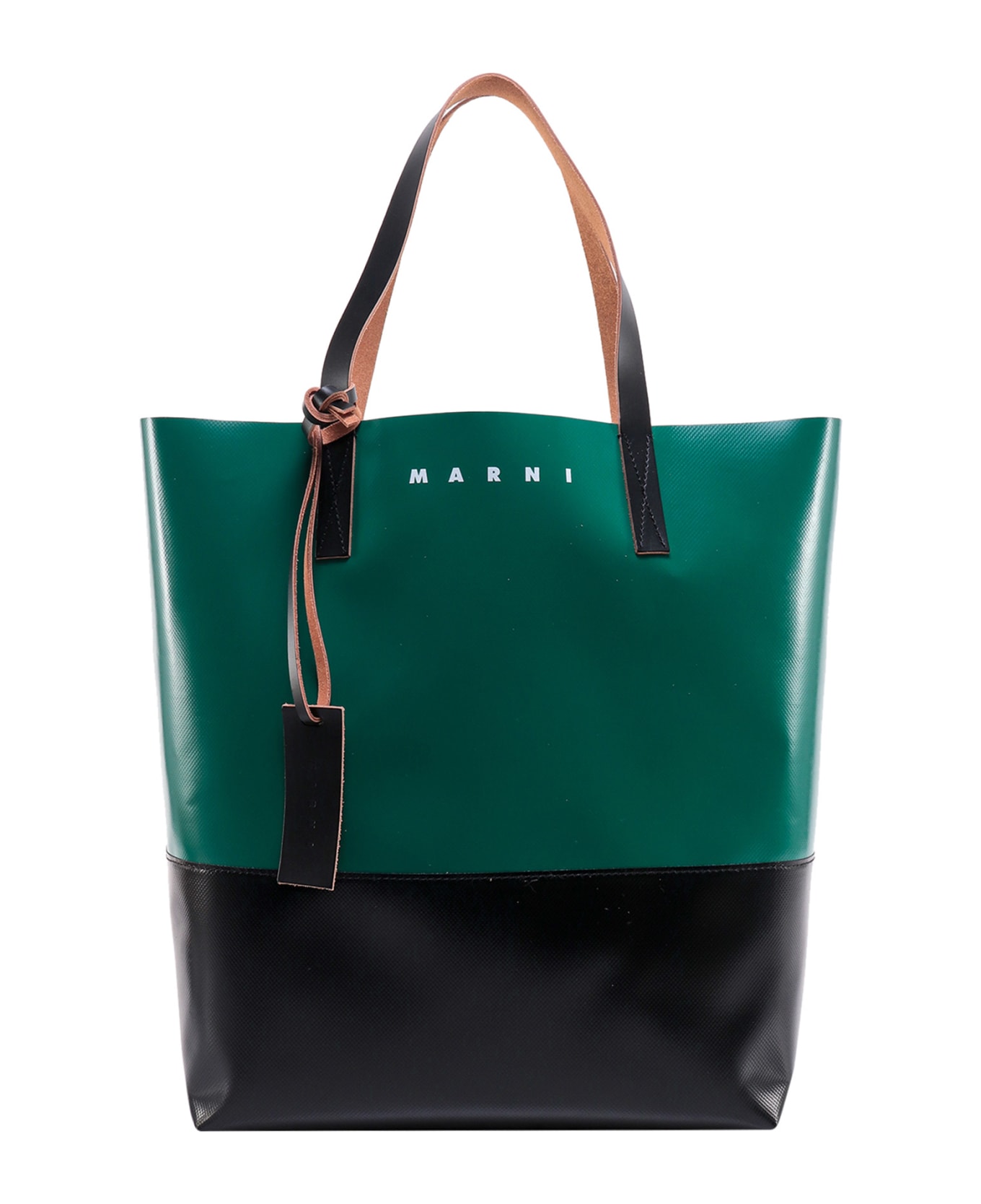 Pvc shoulder bag - Two Leather Handles - External Leather Tag With Logo - Bicolor - Made In Italy - 100% Polyester