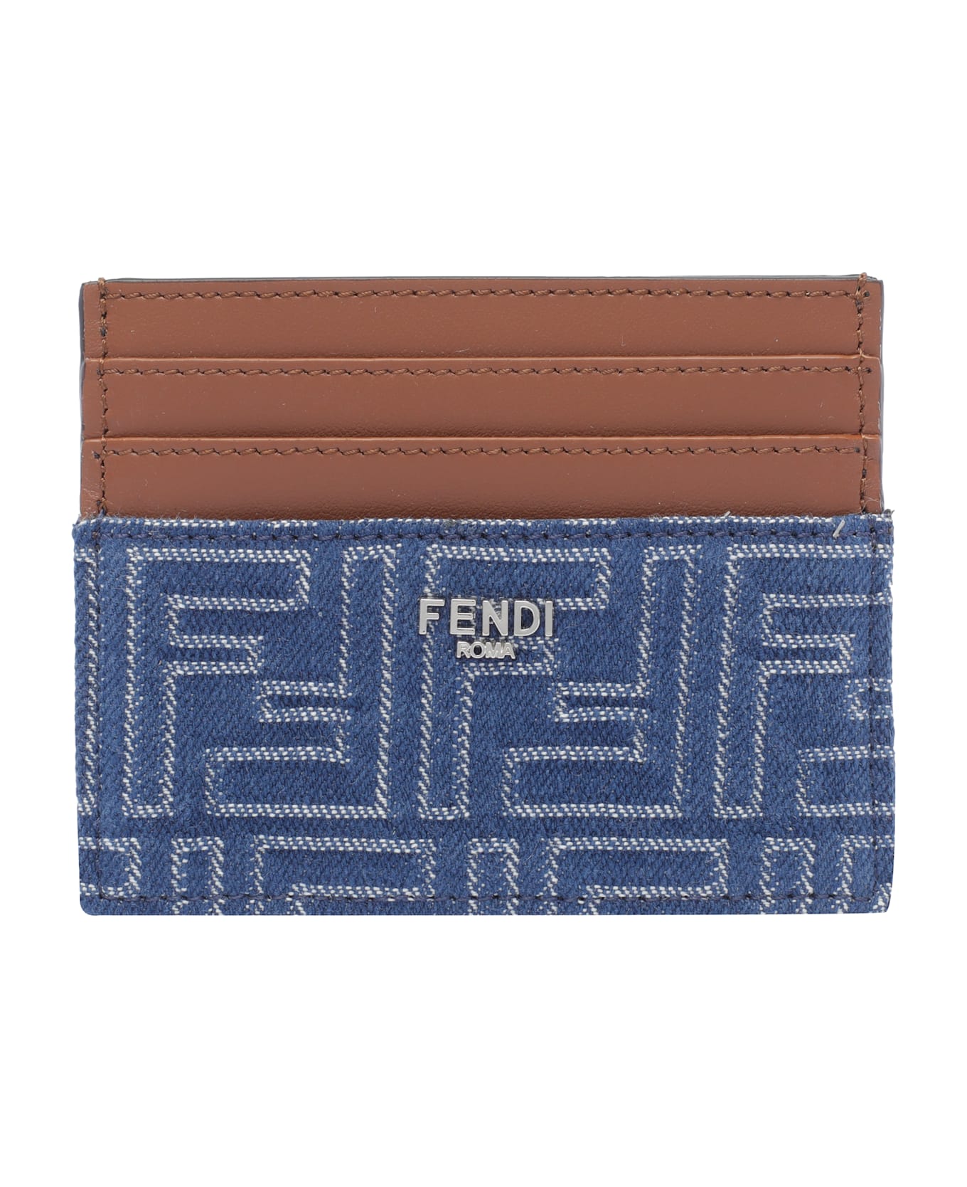 Fendi denim cards holder, 6 slots, central flat pocket, FF plaque logo Composition: 100% Fabric, 100% Calf Leather
