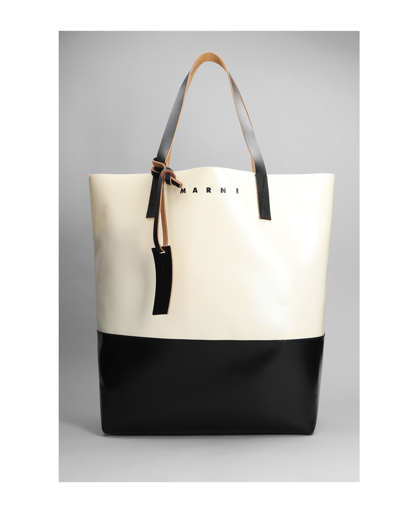 Tote in black polyester, Height 450 mm, Width 400 mm, double handle, bicolor, tag logo detail, Made in Italy