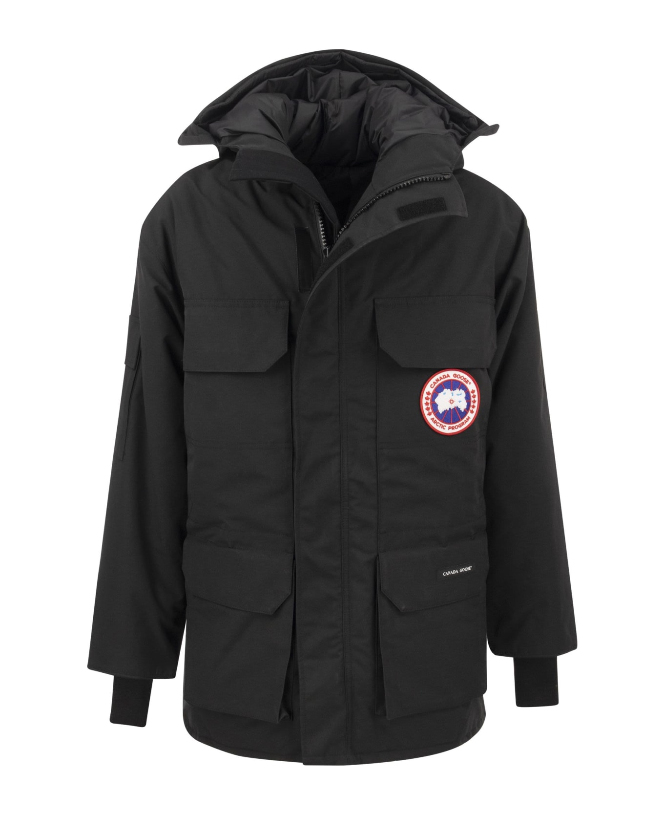 The Expedition model is the original parka for extreme weather conditions, developed for scientists working at McMurdo Station in the Antarctic region. Regardless of your next trip, through a frozen urban jungle or uncharted expanses of ice, Canada Goose's Expedition parka offers you performance proven every year at the South Pole by the National Science Foundation's Polar Research division. - Adjustable padded down hood - Chin guard lined with tricot fabric - Retractable knitted cuffs - Flap with Velcro closure on two-way zip - 2 inside pockets DESIGNER ID: 2051M 61