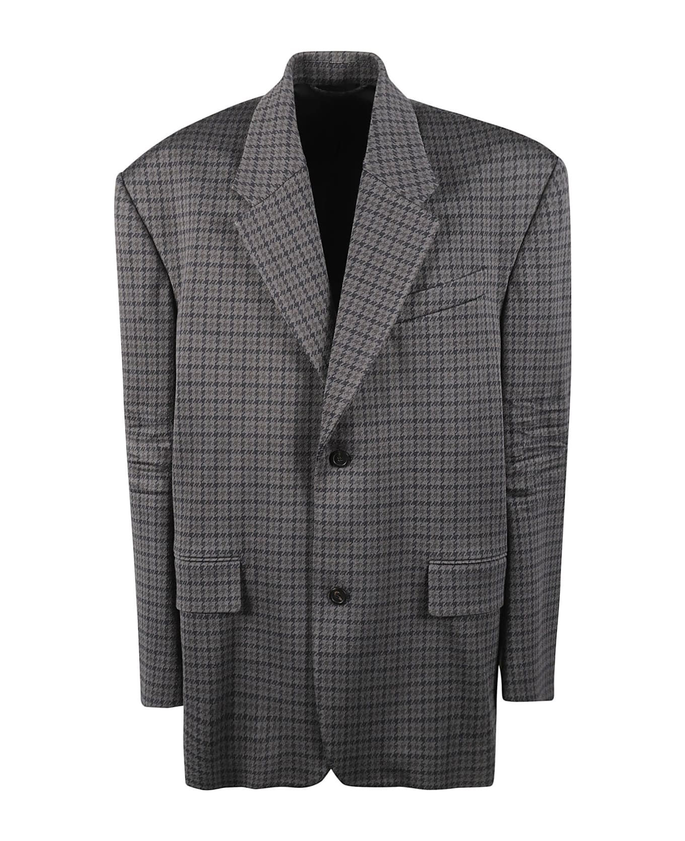 houndstooth single-breasted blazer from BALENCIAGA featuring charcoal grey, cotton blend, houndstooth pattern, classic lapels, front button fastening, two front flap pockets, long sleeves and straight hem. When buying this unisex item, keep in mind that it is graded in standard men's sizing.. We've partnered with Good On You an independent agency that rates how brands perform in relation to their impact on the planet, people and animals, with a multi-criteria rating simplified to a five points scale. In order to be awarded our conscious label, larger brands need to score a minimum of four out of five ('Good'), while smaller brands must score at least three out of five ('It's a start'). This item comes from a brand rated four out of five ('Good') by Good on You. Please note, this is a brand-level rating and does not guarantee that this product is made with conscious materials..