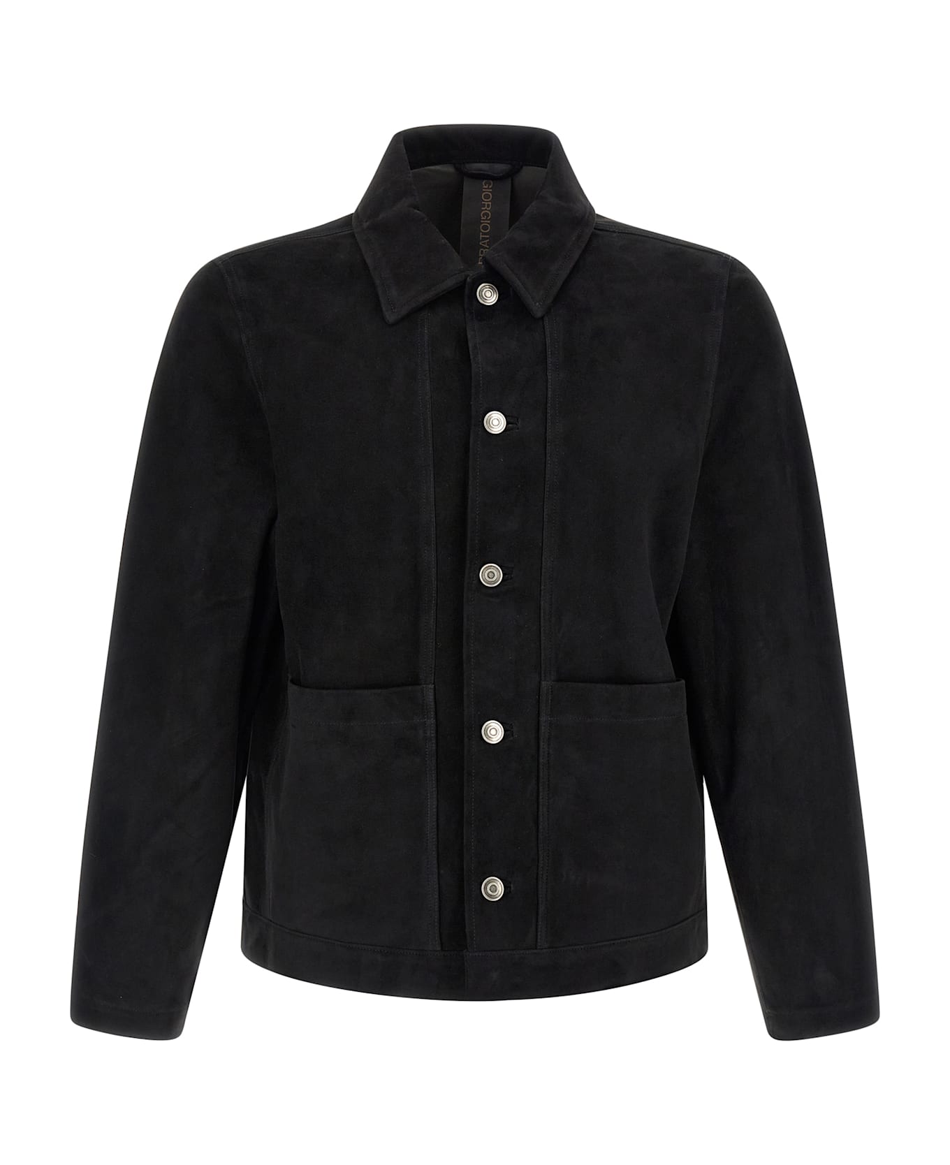 Fiore suede jacket, unlined, shirt collar, front button closure, pockets, long sleeves with cuffs. Composition: 100% suede leather