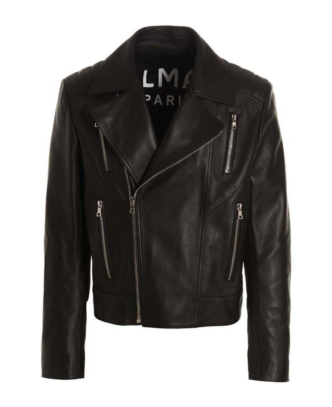 Leather biker jacket, four zippered pockets, belting at the waist, asymmetric zip closure, ribbed details long sleeves with zip. Composition: 100% lamb leather (Ovis Aries)