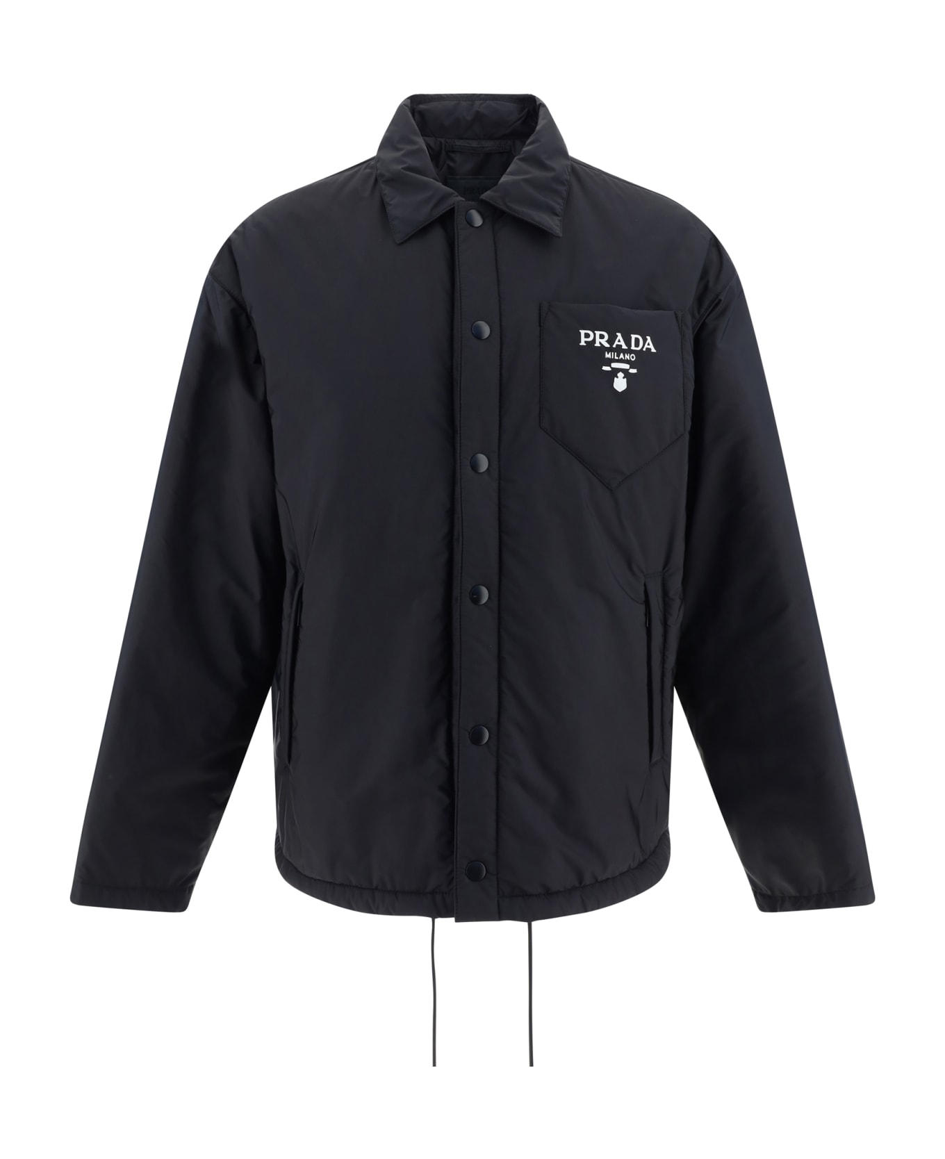 Re-nylon jacket by prada, front snap-button closure, classic collar design, two side welt pockets with zipper for closure, padded design, iconic brand monogram printed in contrast on front breast pocket, regular fit. Composition: 100% % Polyamide