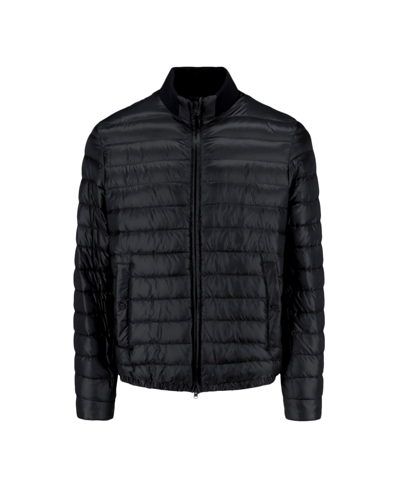 Herno 'Ultralight' light down jacket in black nylon with padded and quilted design, high ribbed collar, double zip closure, two side button pockets, inner zip pocket, back logo hardware, straight hem. Composition: 100% Polyamide