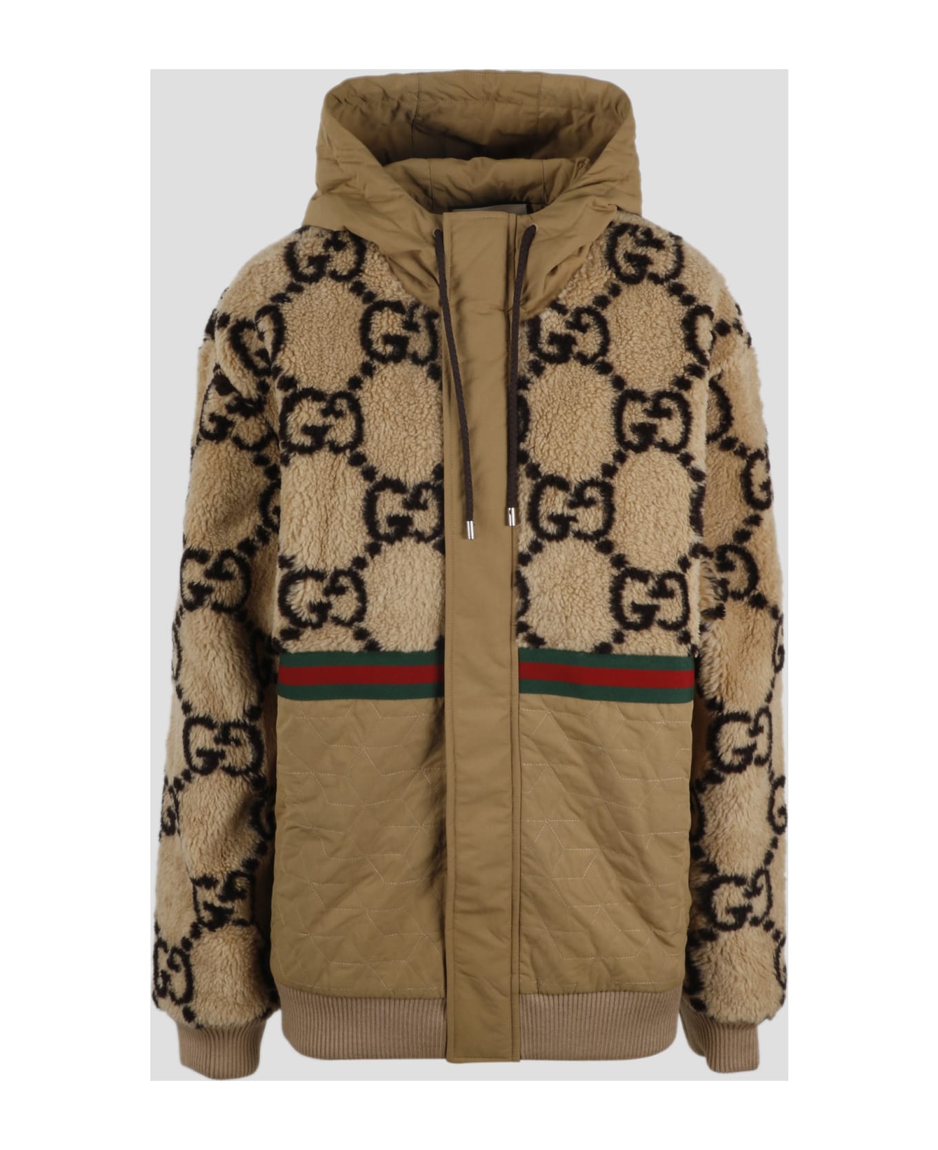 Gucci fabric GG jacquard and nylon jacket, with Web stripe detail. - SS23