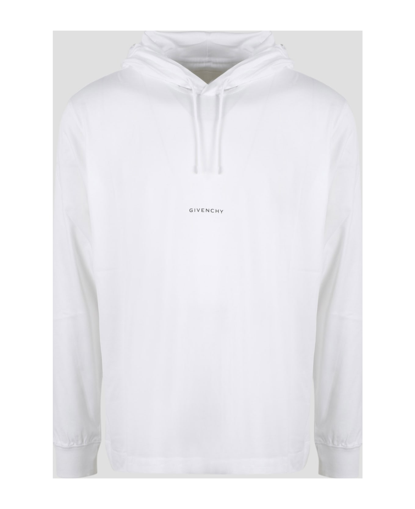 Givenchy long sleeve hooded t-shirt in cotton jersey. - SS23 - Regular fit - Drawstring hood - Long sleeve - Contrast logo print on the front - Made in Portugal - 100% Cotton