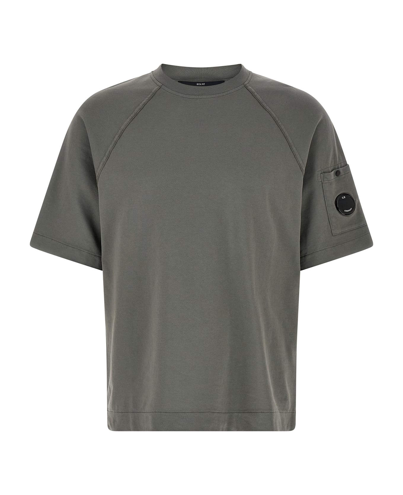 Garment-dyed light cotton fleece sweatshirt, crew neck, short raglan sleeves with iconic C. P. Company 'Lente' appliqué.
