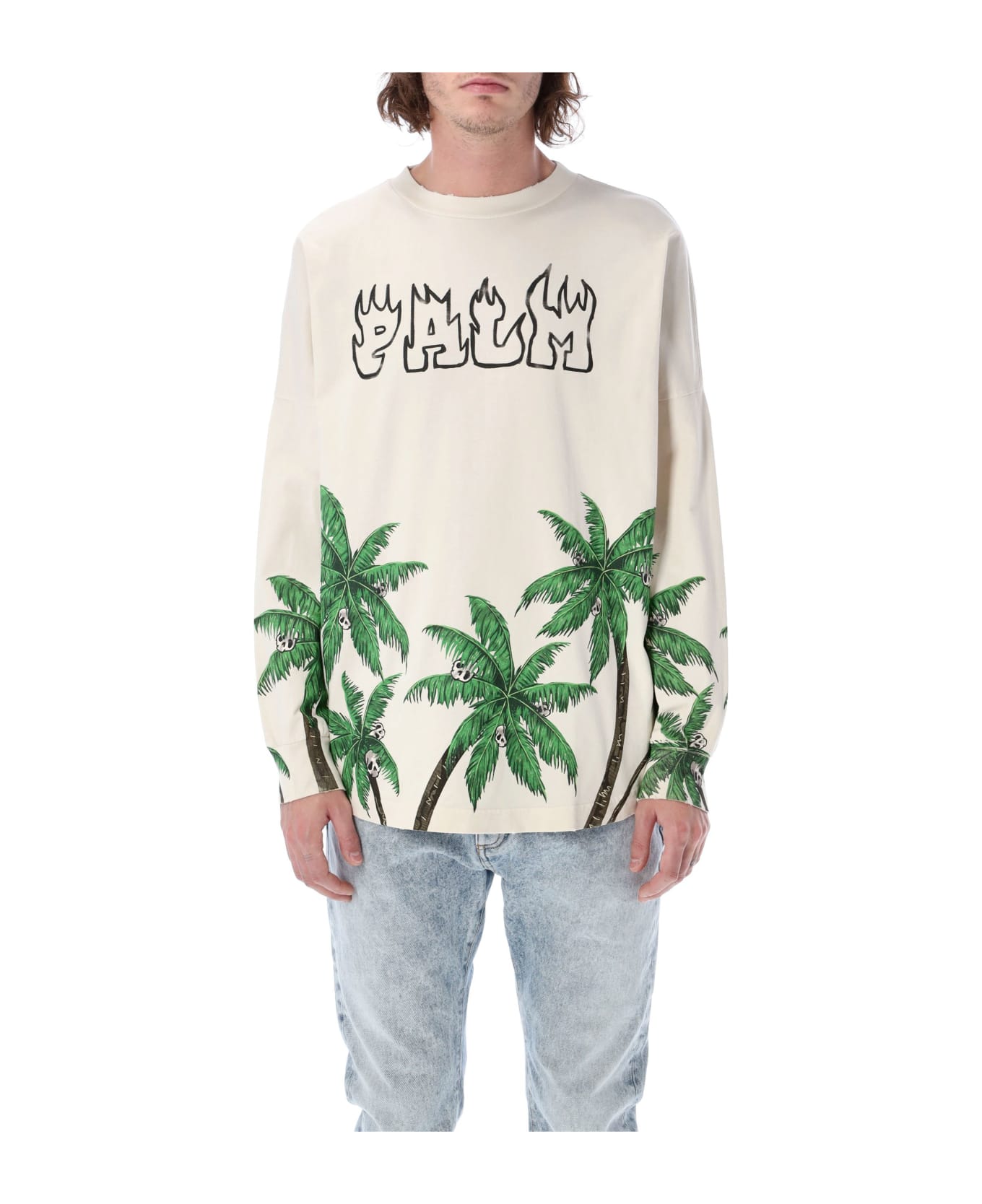 Cotton Palms&skull L/s Over T-shirt By Palm Angels. Featuring: