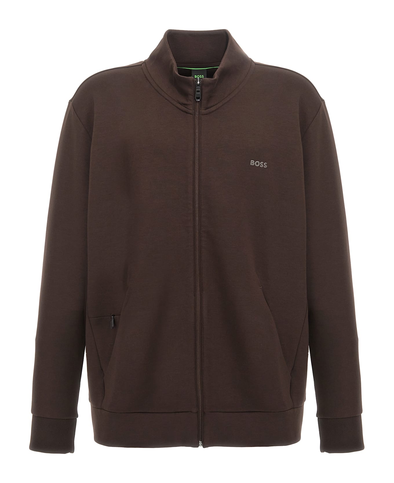 'Skaz' stretch cotton sweatshirt with front embossed logo, high neck, pockets, zip closure, long cuffed sleeves. SUSTAINABLE: This product is made with recycled cotton. Composition: 95% cotton 5% elastane