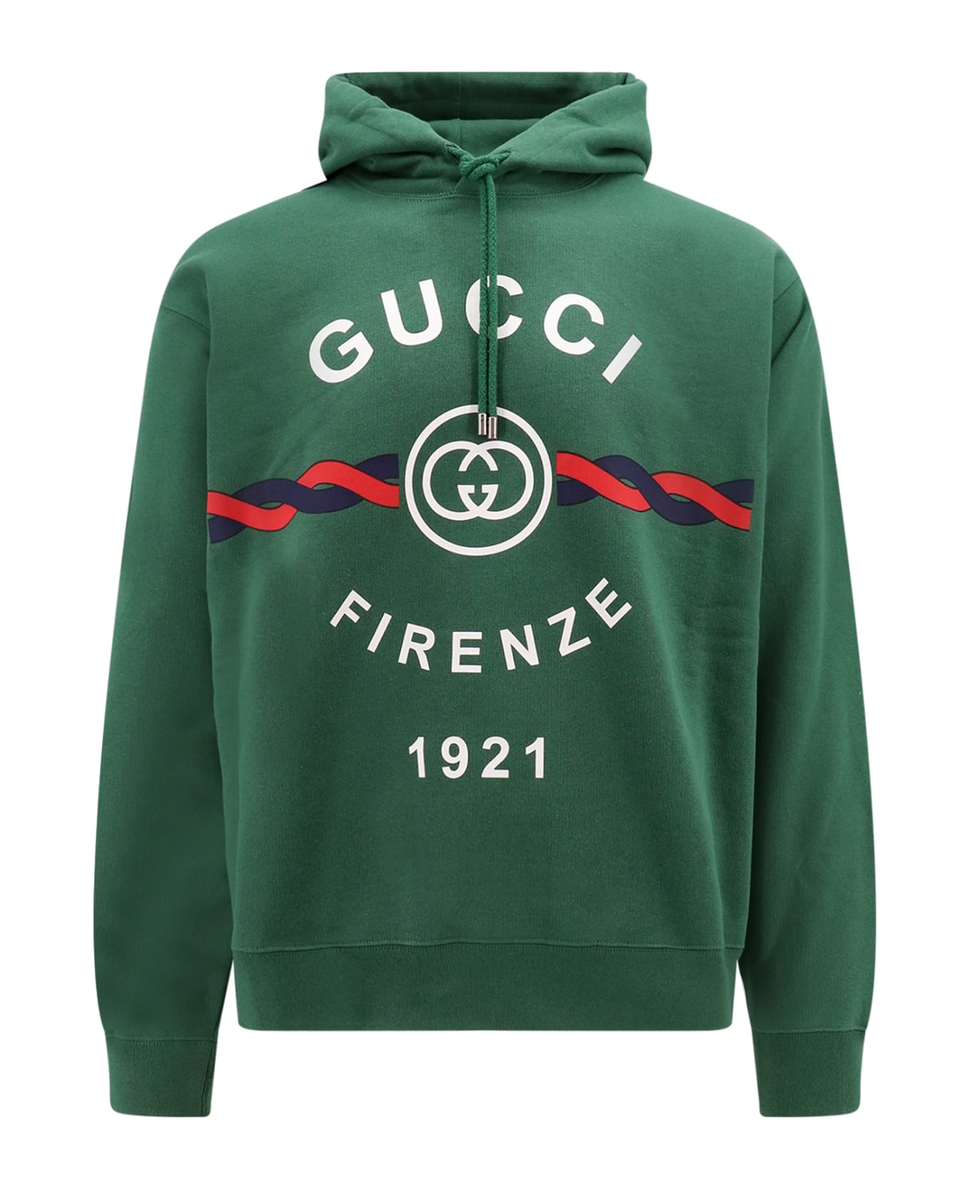 - Hood With Adjustable Drawstring - Long Sleeve With Ribbed Cuff - Gucci Firenze 1921 Print On The Front - Made In Italy - 100% Cotton