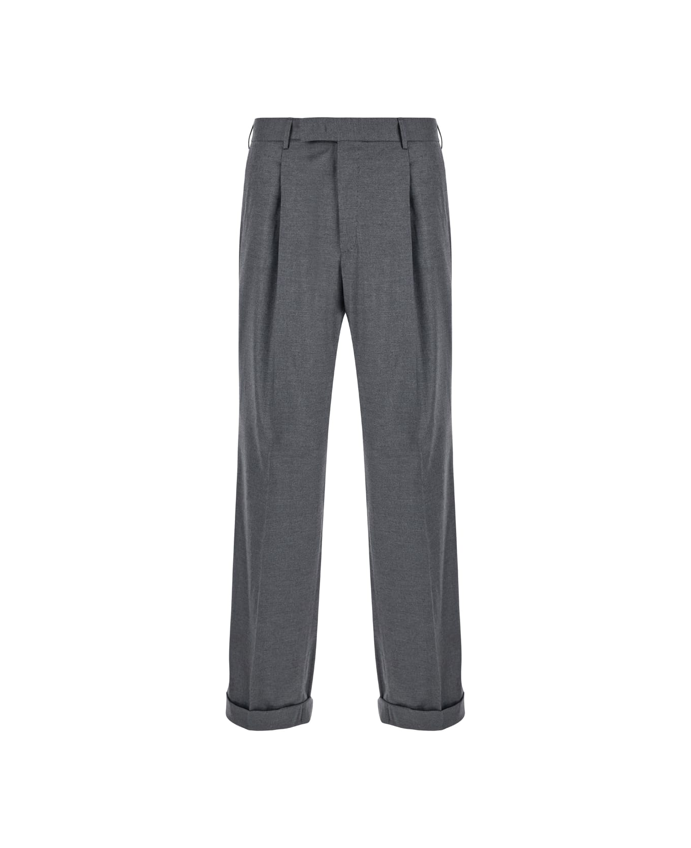 Grey Pants With High Waist And Pences On The Front In Wool Blend Stretch Man