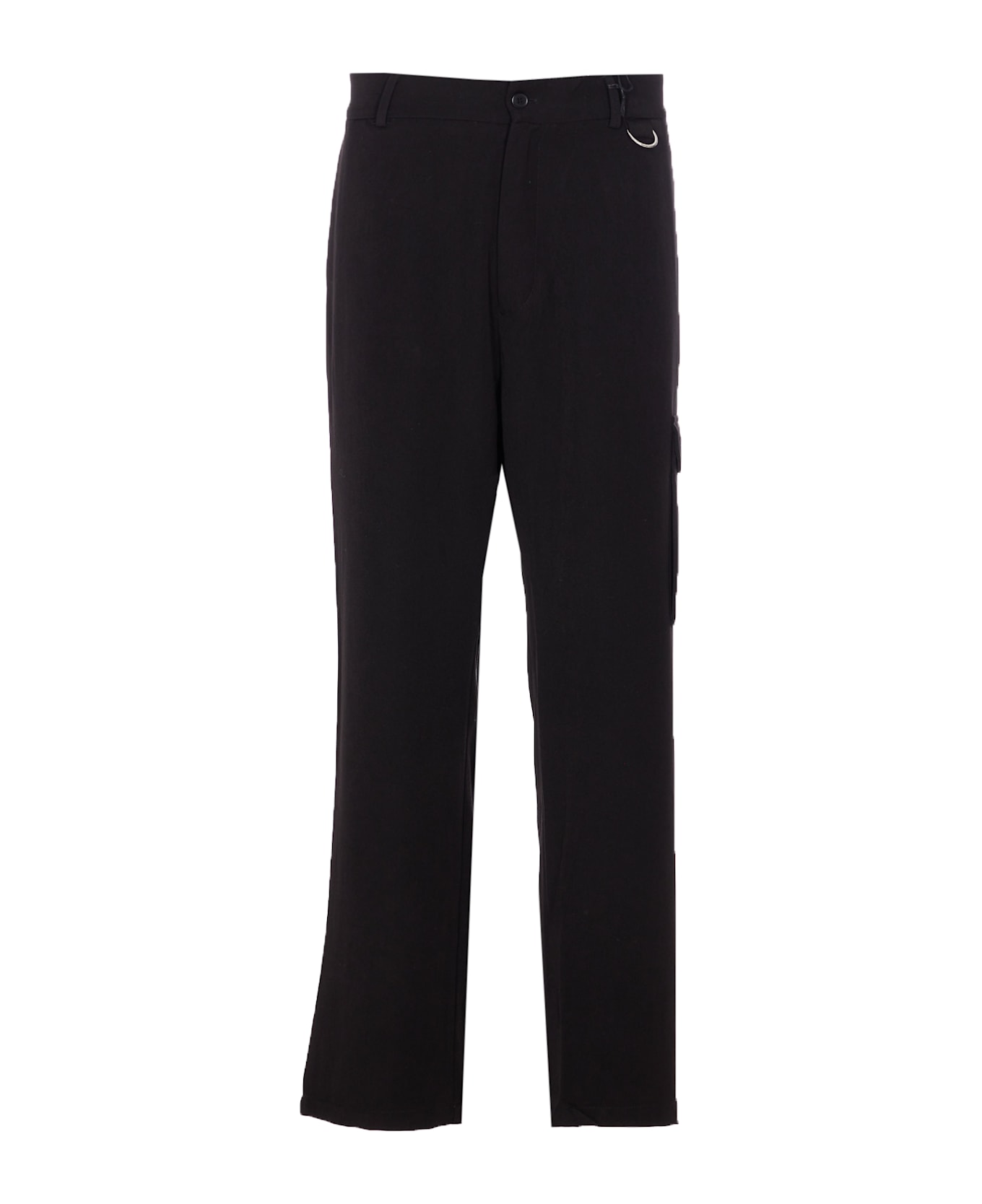 Family First Milano black cargo classic pants, button and zip closure, lateral pockets, regular fit Composition: 75% Polyester, 20% Viscose, 5% Wool