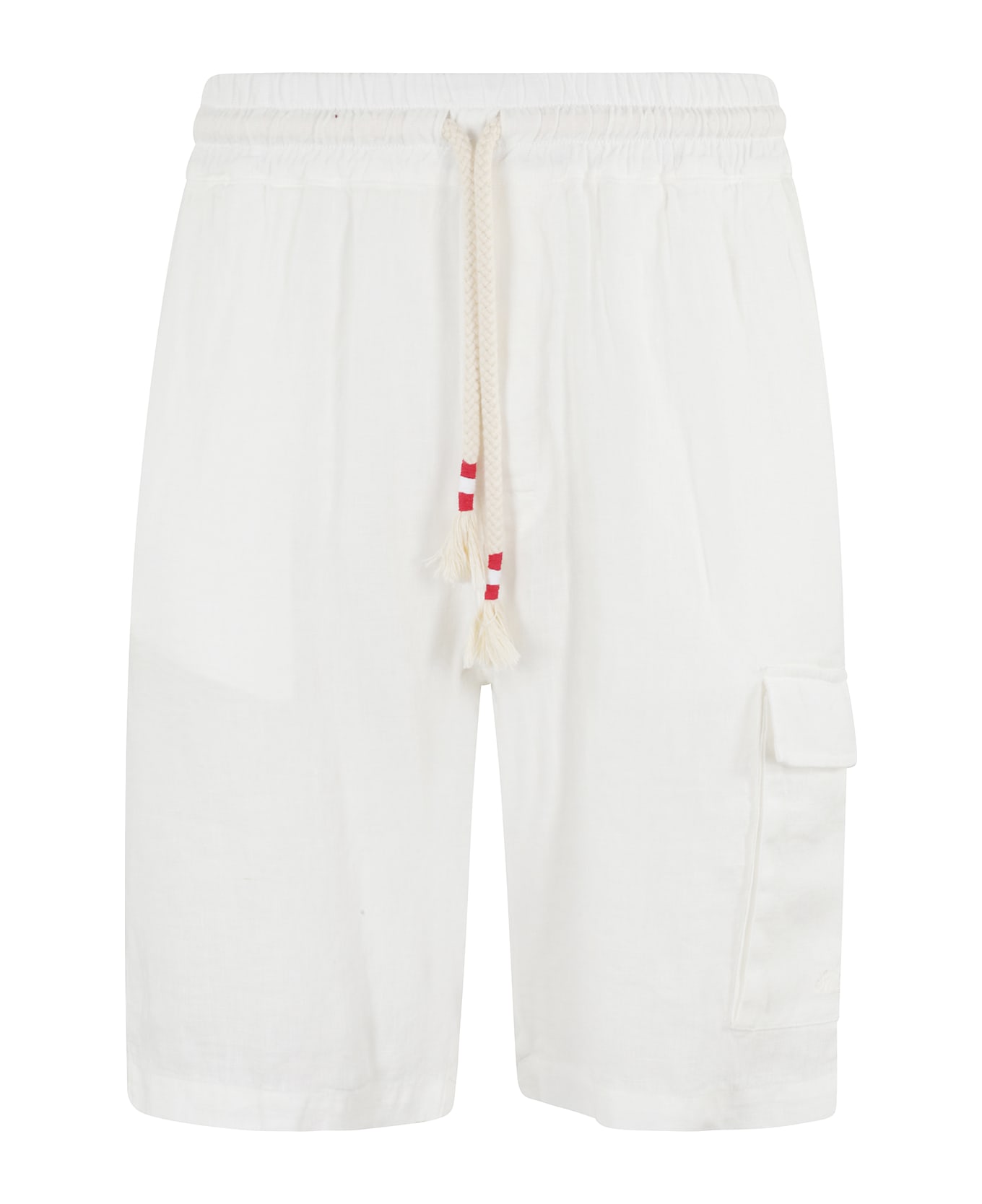 Marseille Bermuda Shorts - MC2 Saint Barth - White color - Linen fabric - Elasticized waistband with drawstring - French side pockets - Side cargo pocket - Tone-on-tone embroidered logo on side - Loose fit