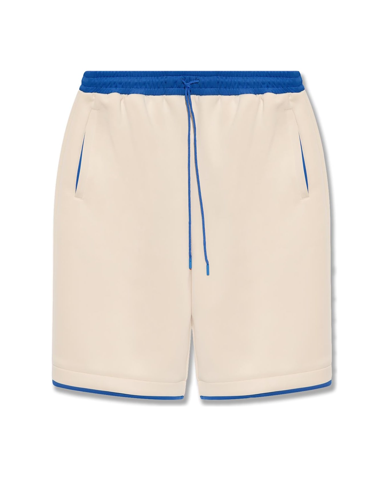 Cream shorts from Gucci. Cinched with drawstrings at the waistband, this pair showcases the brand 'Web' panelling on the sides and three zip pockets. Composition: 85% Polyester 15% Elastane