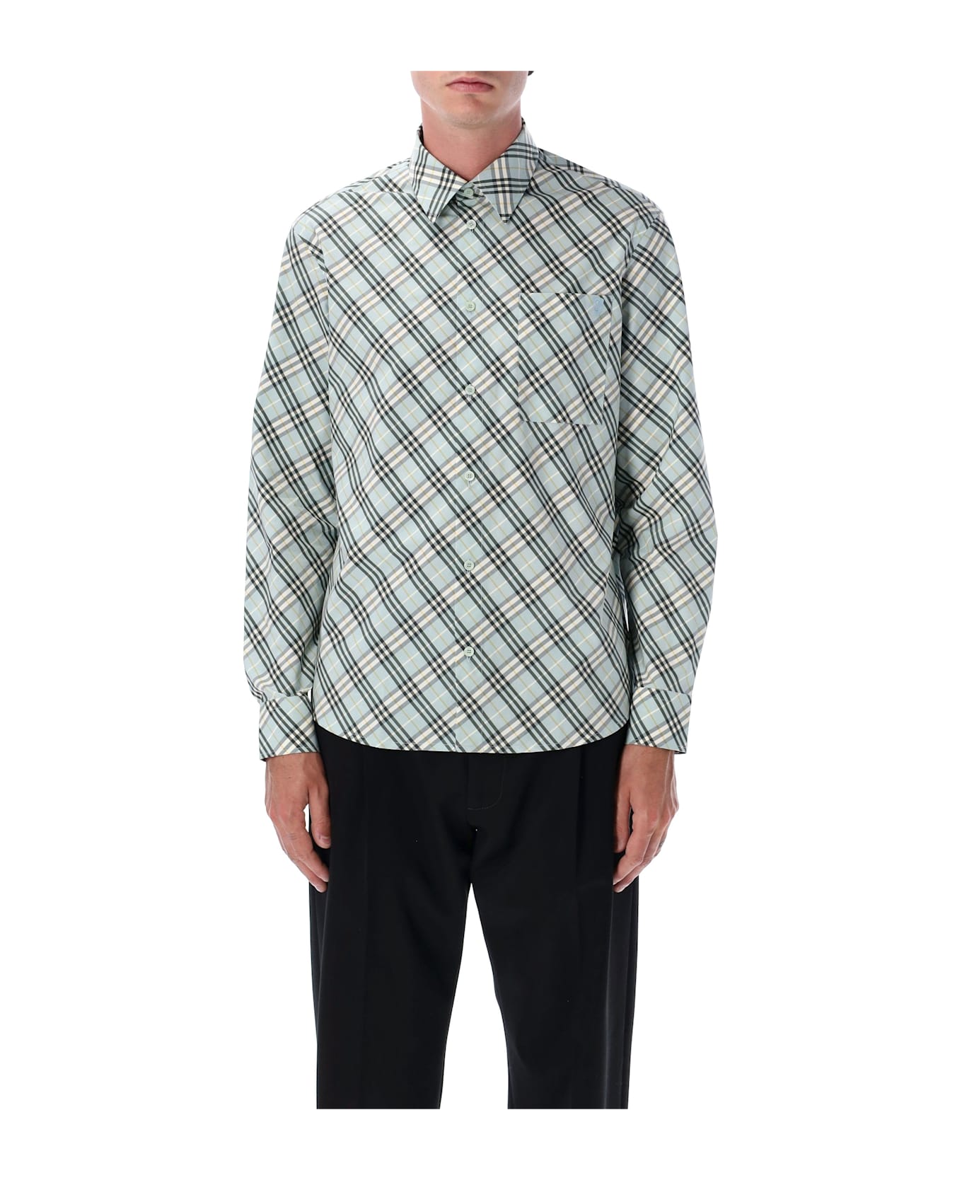Check Cotton Shirt By Burberry London. Featuring: Check Poplin Point Collar Buttons Closure Long Sleeves With Single-button Cuffs Chest Pocket With Embroidered B Shield Emblem Curved Hem Model Is 1,90 M And Wears Size M