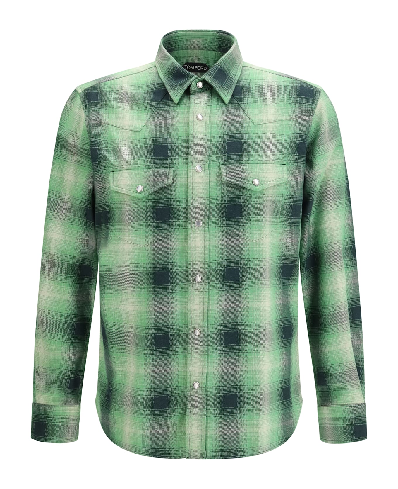 The check shirt by tom ford combines elegance and casual style with a sophisticated design. featuring a classic collar, it has a snap button closure for practical comfort. the two patch pockets on the front, with flap and button, add functionality and a touch of originality. the all-over check pattern gives the garment a dynamic and timeless look, while the cotton ensures a soft and breathable fit. perfect for a casual-chic look, ideal for everyday occasions.