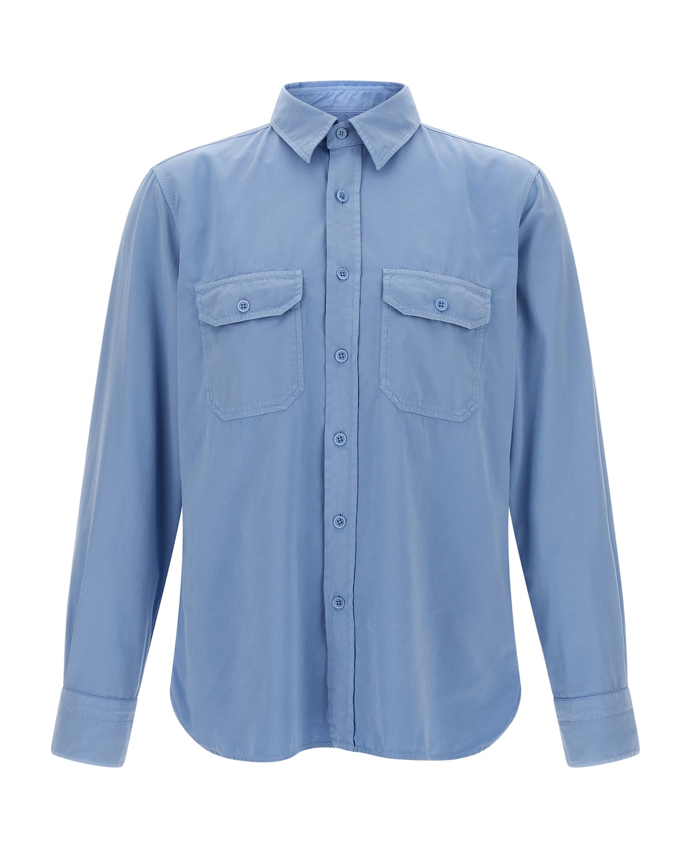 Cotton and silk faille shirt, pointed collar, pockets, front button closure, long sleeves with one-button blunt cuffs, back yoke, rounded hem. Composition: 92% cotton, 8% silk