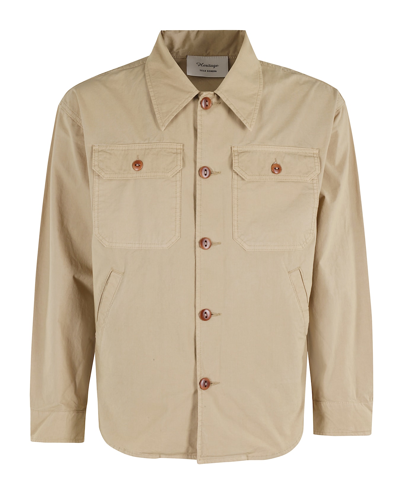 Jose shirt - Genoa canvas - Khaki color - Pointed collar - Long sleeve with cuff and button - Front flap and button pockets - Flush side pockets - Front button closure - Over fit