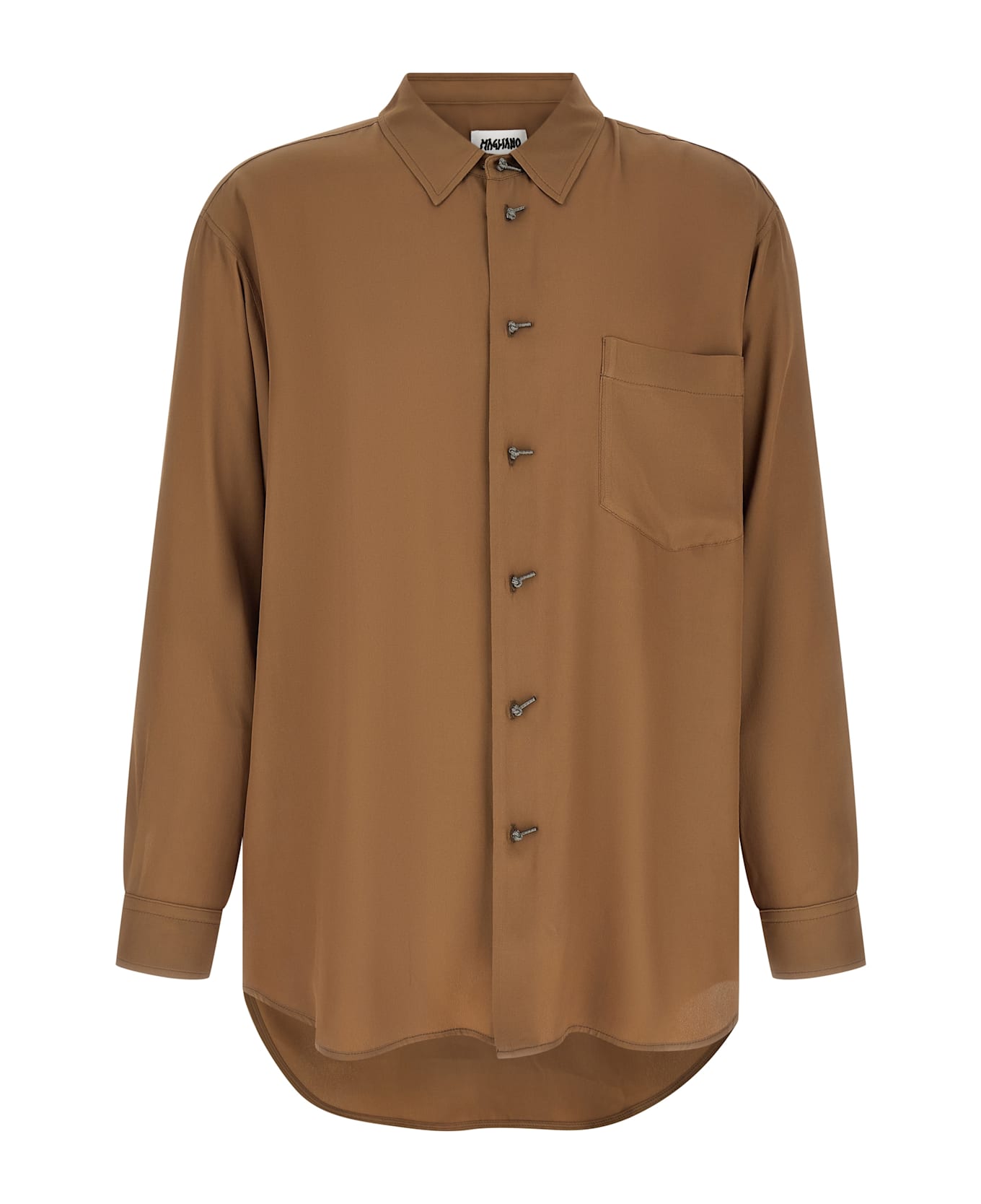 'Trekking' shirt in light silk blend with front 'Trekking' closure, breast pocket, long sleeves with cuffs and dropped shoulders, asymmetrical hem.
