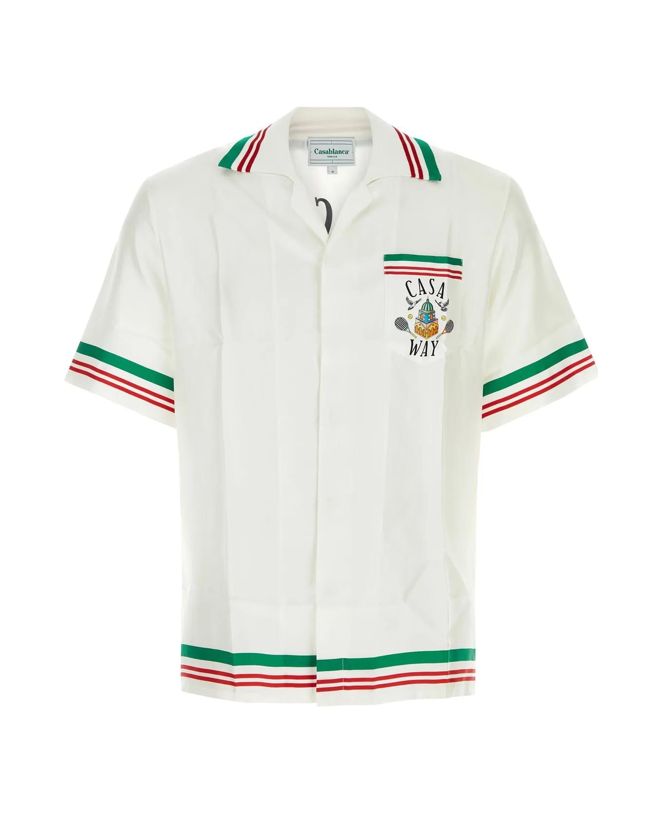 Shirt realized in pure silk characterized by contrasting Casa Way print on the chest and at the back. - Contrasting trimmings, notched collar, cuffs and hemline - Concealed buttons with single visible button closure - Chest pocket Composition: Exterior: 100% Silk