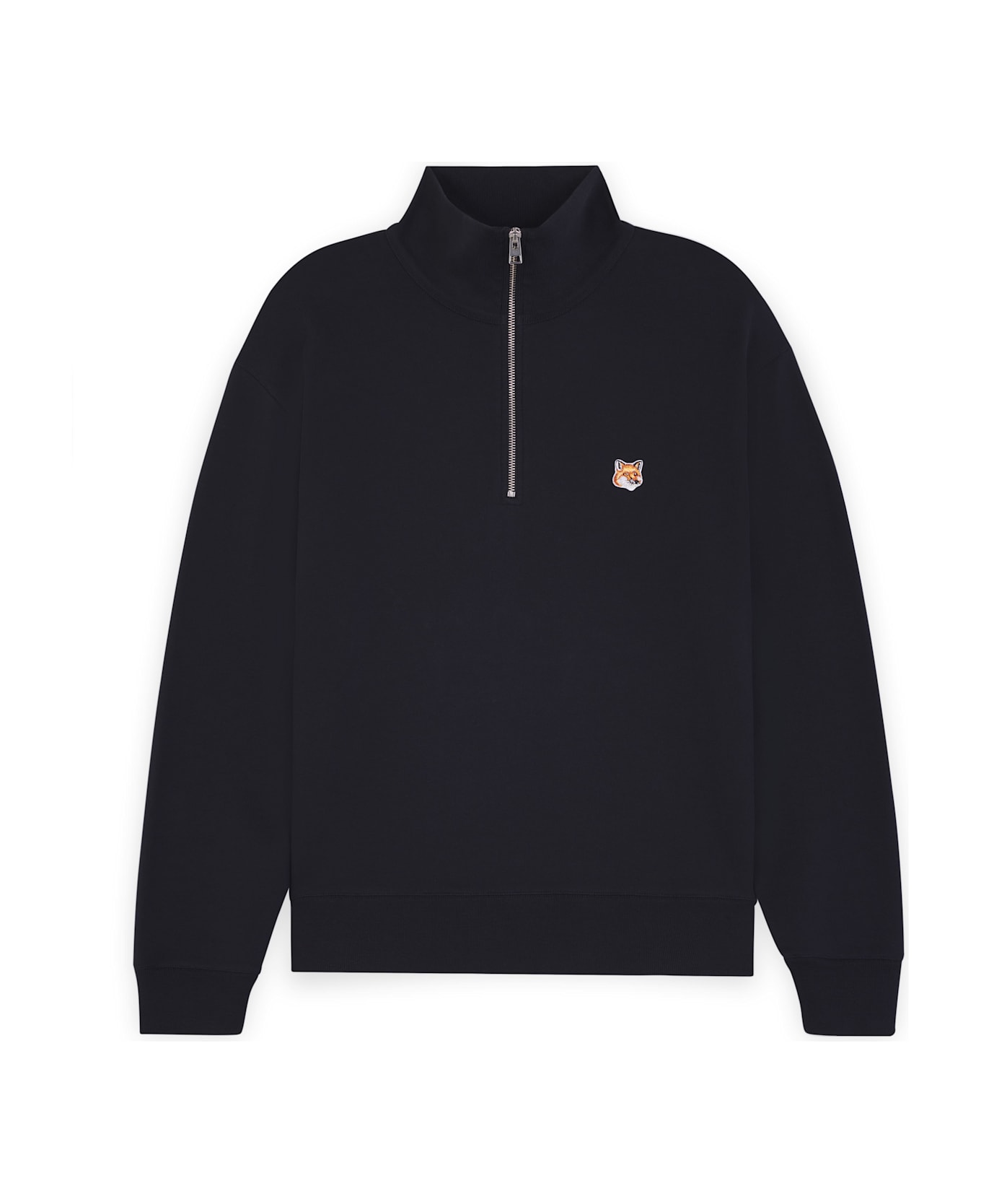 Cotton sweatshirt with zip, logo stitched on the chest and ribbed edges by MAISON KITSUNE.