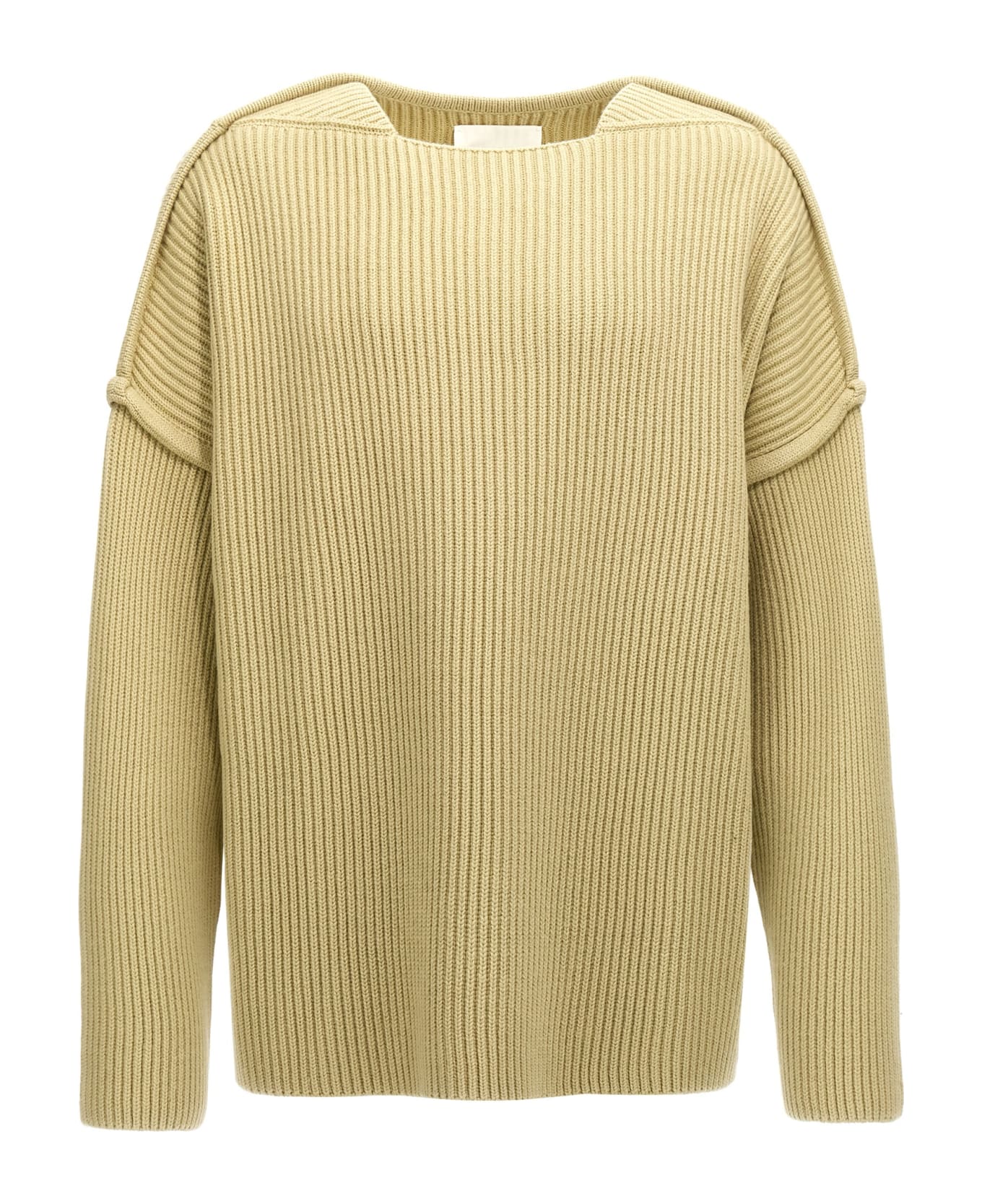 Ribbed wool sweater with geometric neckline and long sleeves. Composition: 100% wool