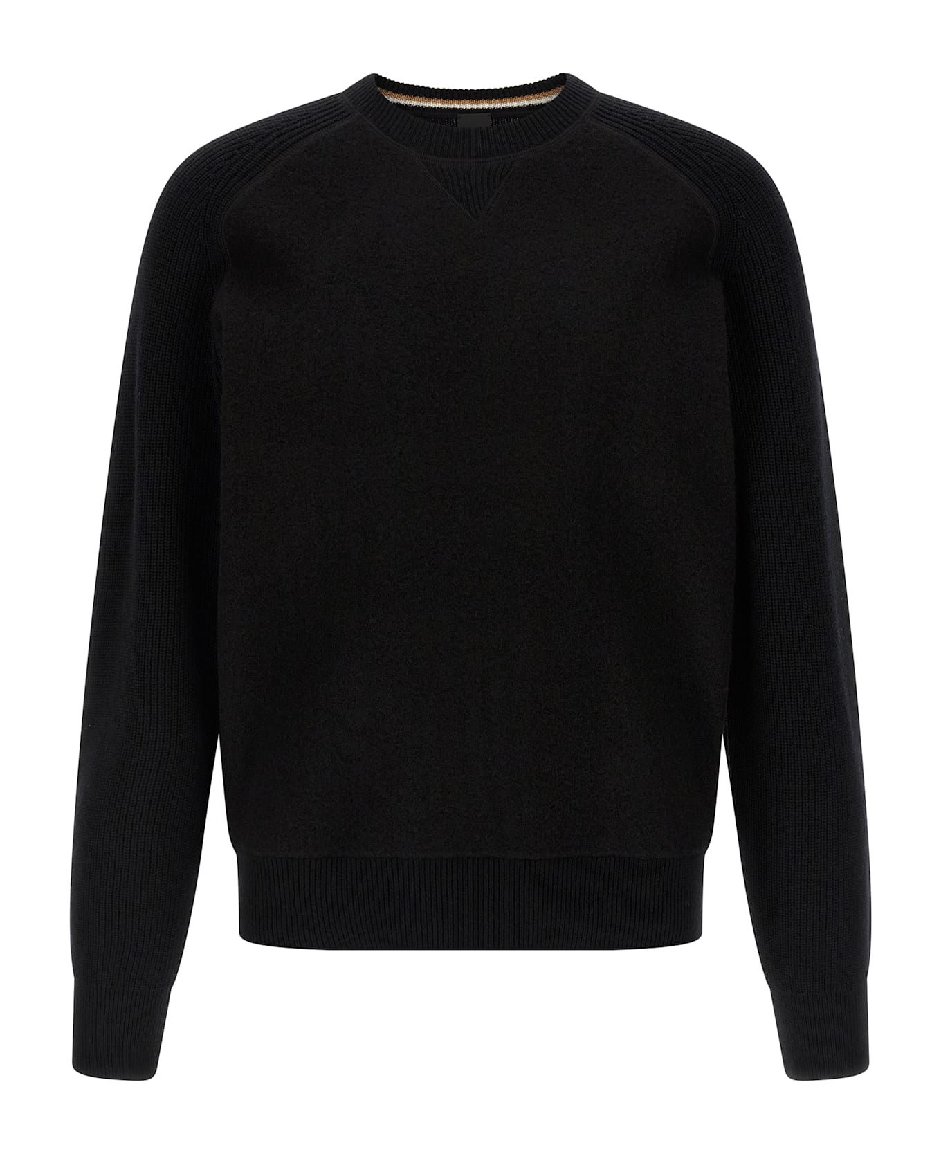 Virgin wool 'H-Hero' sweater with carded front and knitted sleeves, crew neck, long raglan sleeves with cuffs, band on the hem.