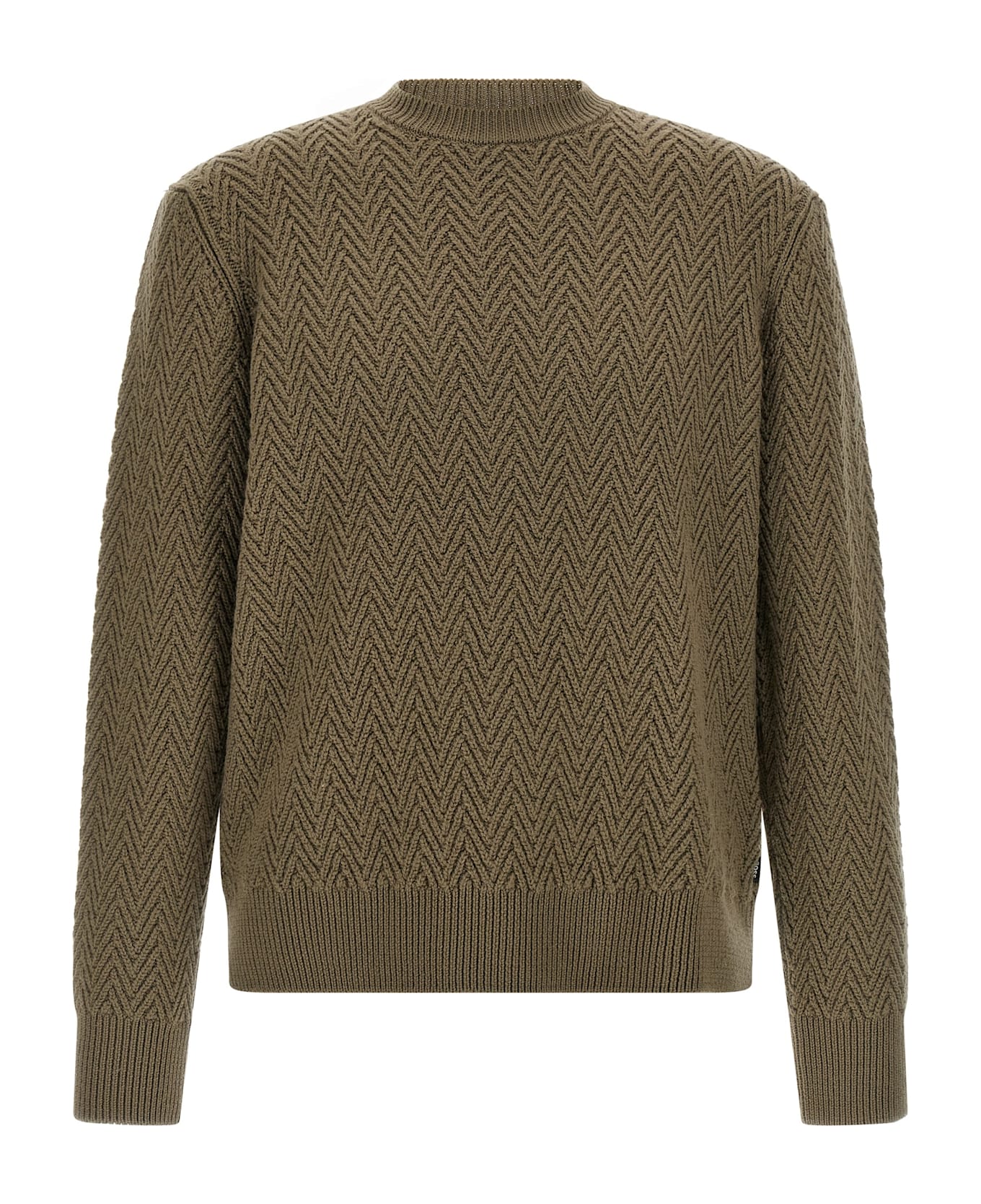 'H-Hitalo' thermoregulating virgin wool sweater with herringbone processing, crew neck, long cuffed sleeves, headband.