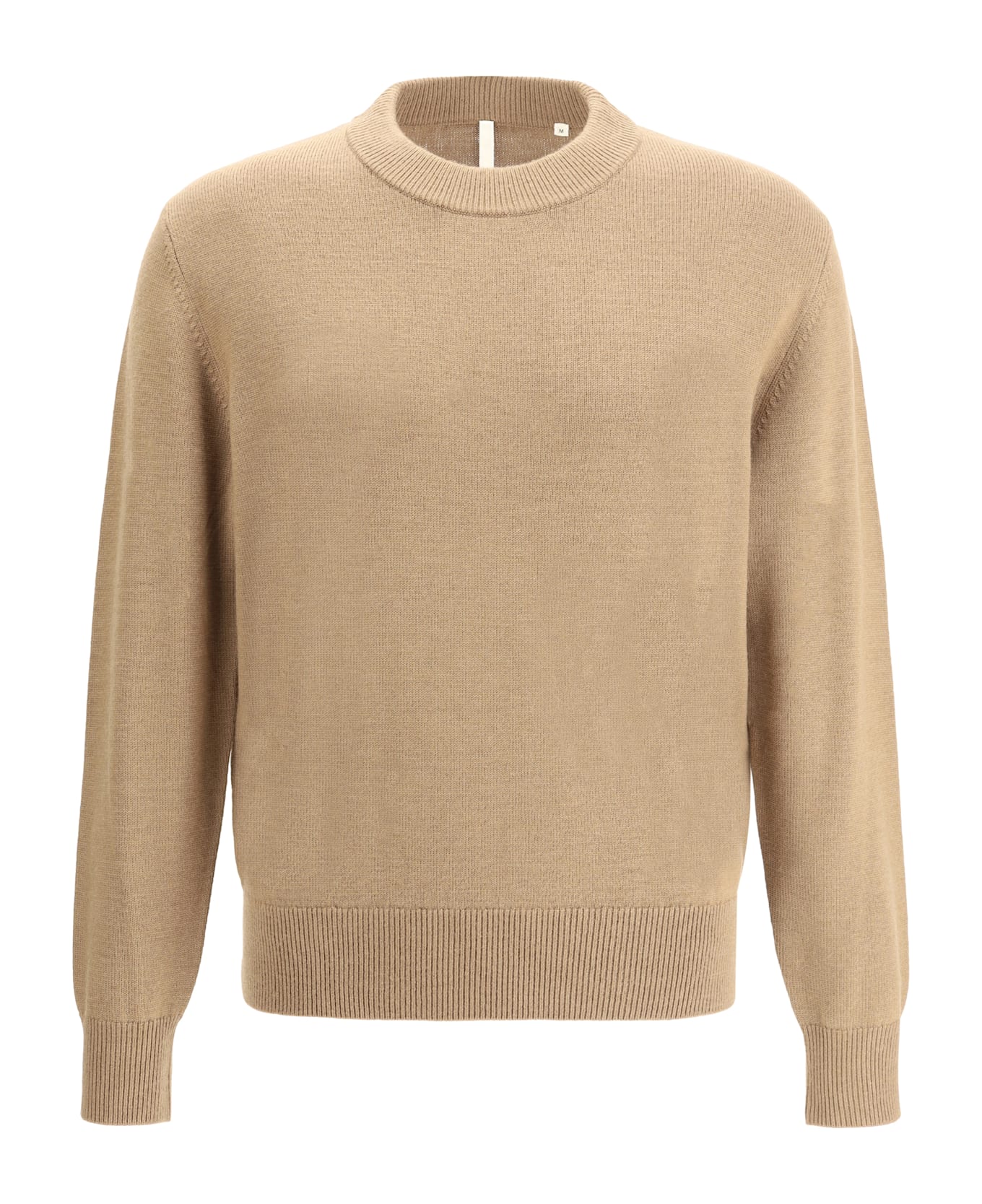 Sunflower's merino wool sweater is an essential piece with a clean, timeless design. made of fine merino wool, it features a crew neck, ribbed cuffs and hem that define its structure. the monochrome pattern and regular fit make it versatile and suitable for any occasion. perfect for those looking for a high-quality wool sweater with an understated, refined style.