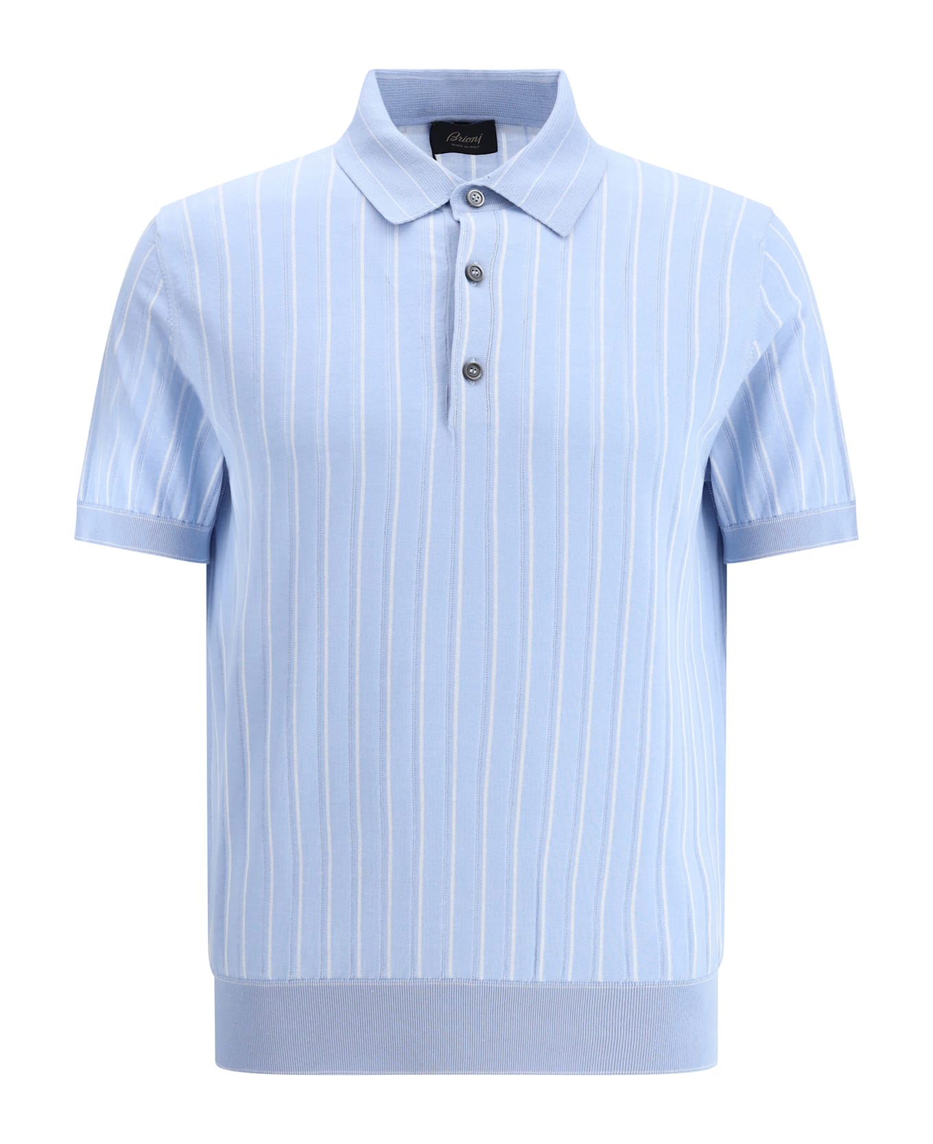 Brioni's striped polo sweater is an elegant and sophisticated piece, featuring a ribbed collar that adds a touch of class. the classic brioni signature three-button closure ensures a perfect fit, while the ribbed hem gives a refined finish. the modern and versatile striped pattern enriches the design with a dynamic and stylish accent. perfect for a casual-chic look, this polo lends itself to numerous pairings, making it ideal for informal yet elegant occasions.