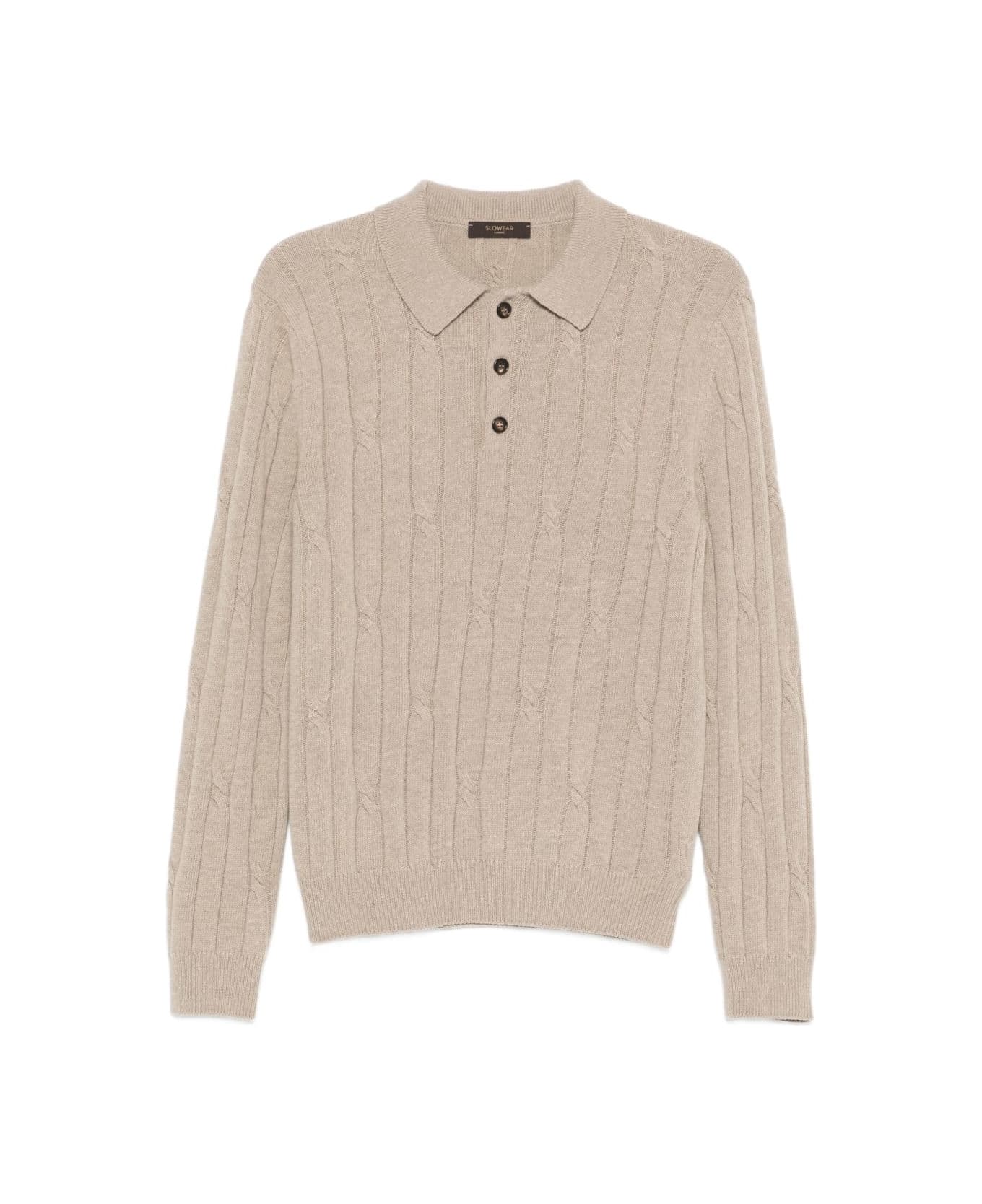Zanone Beige cable-knit sweater, long sleeves, front button closure, ribbed hem, polo collar Composition: Tessuto Principale, 70% Lana Vergine/, 30% Cashmere