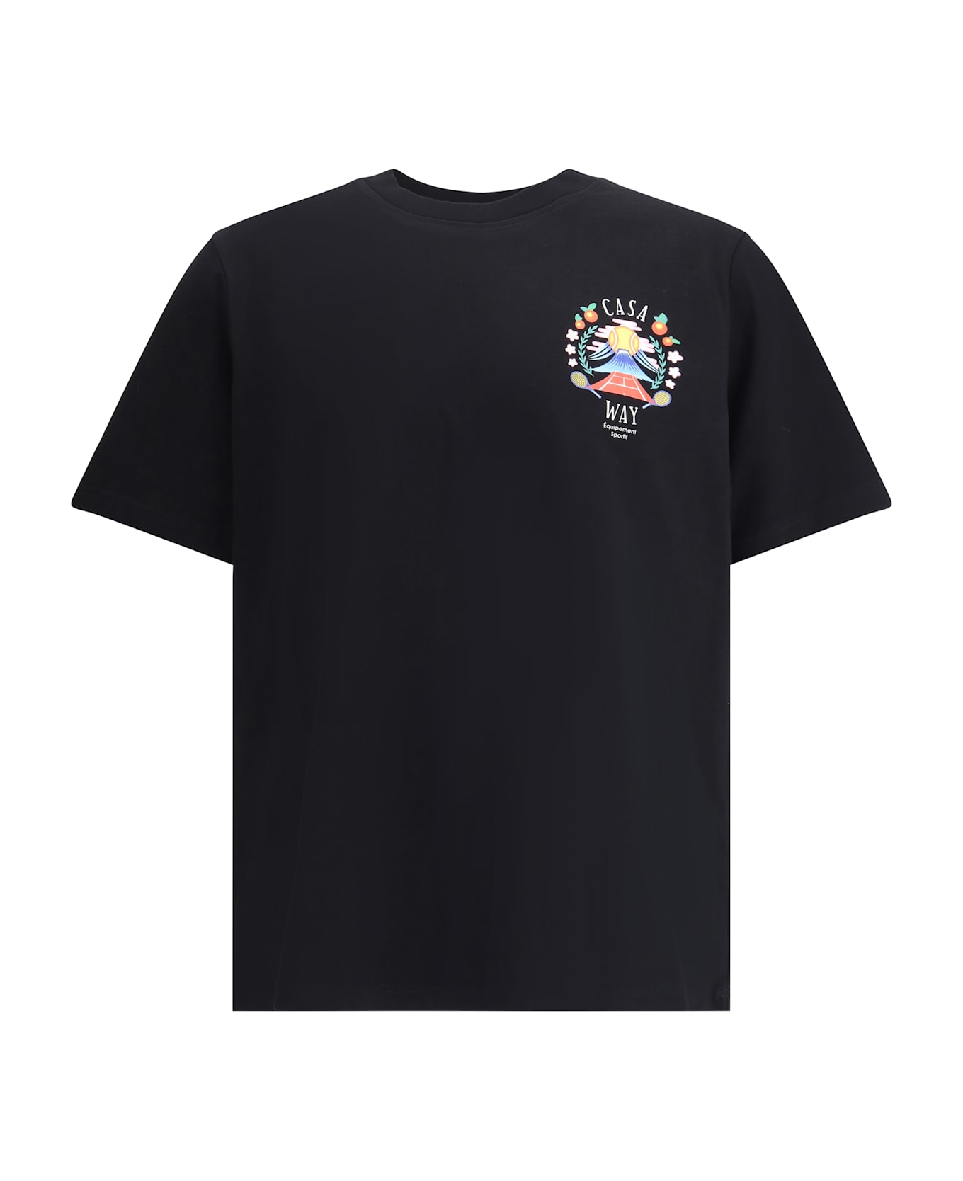 Casablanca's signature pure cotton t-shirt features a graphic "casa way mountain" print on the front and back that echoes the brand's artistic and refined style. the ribbed crew neck guarantees a comfortable fit and impeccable tightness. a distinctive garment that combines quality and creativity, perfect for elevating your casual look. Composition: 100% % Cotton