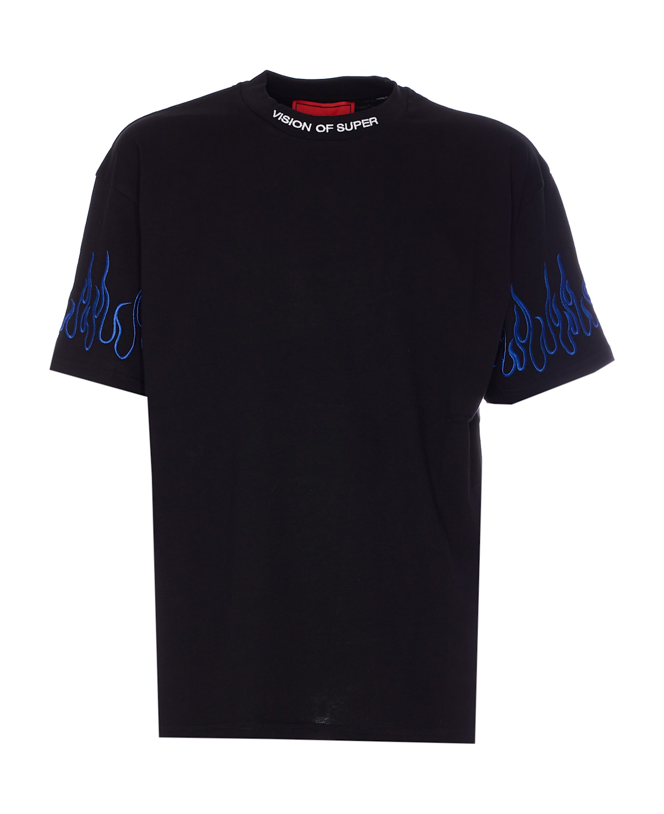 Vision Of Super black t-shirt, crewneck, embroidered logo on collar, embroidered flames