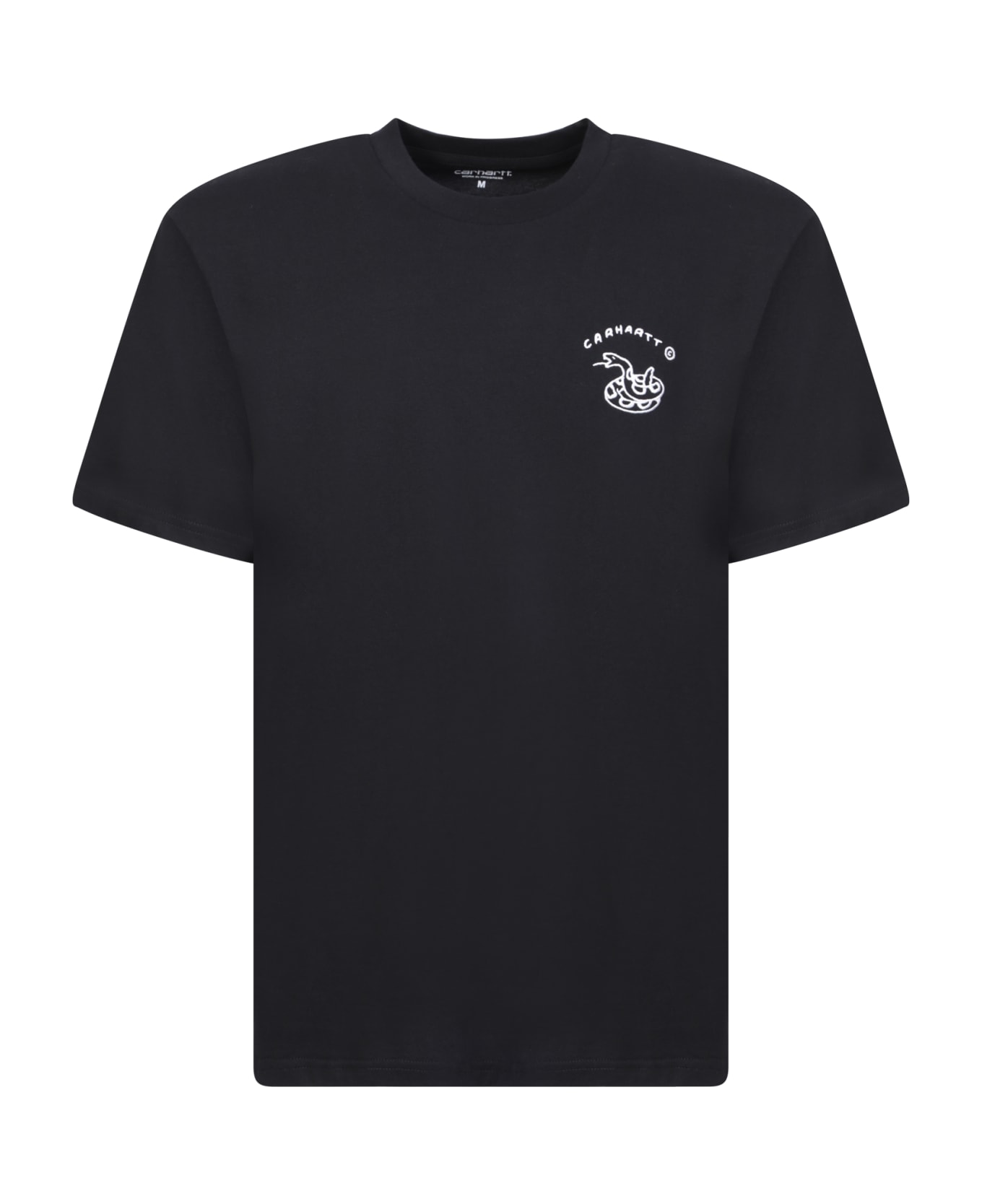 Round neck. Short sleeves. Logo print at the chest. Straight hem. Color: black