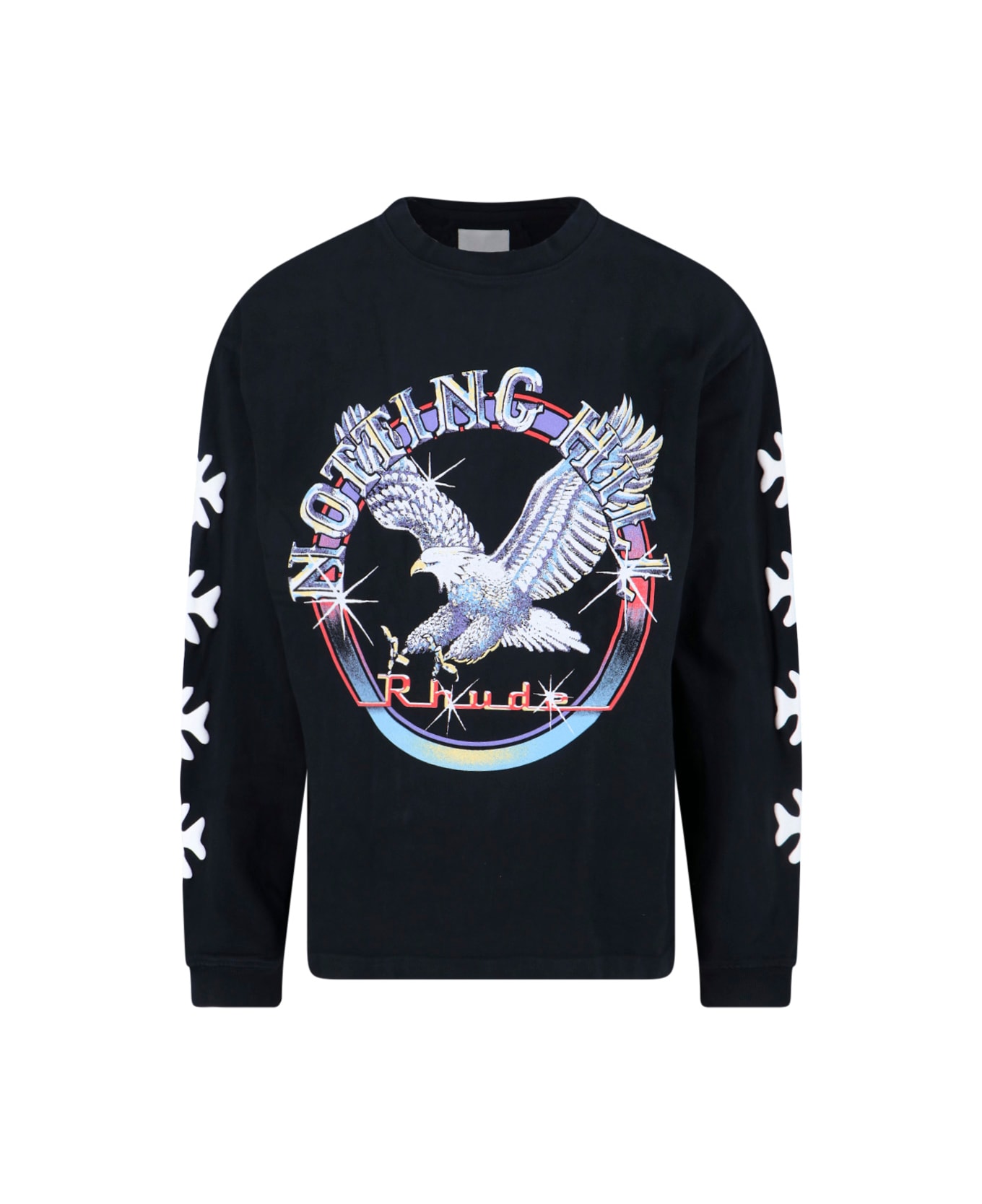 Rhude logo sweatshirt in black cotton with crew neck, maxi front logo print, contrast details on sleeves, elastic cuffs, straight hem. Composition: 100% Cotton