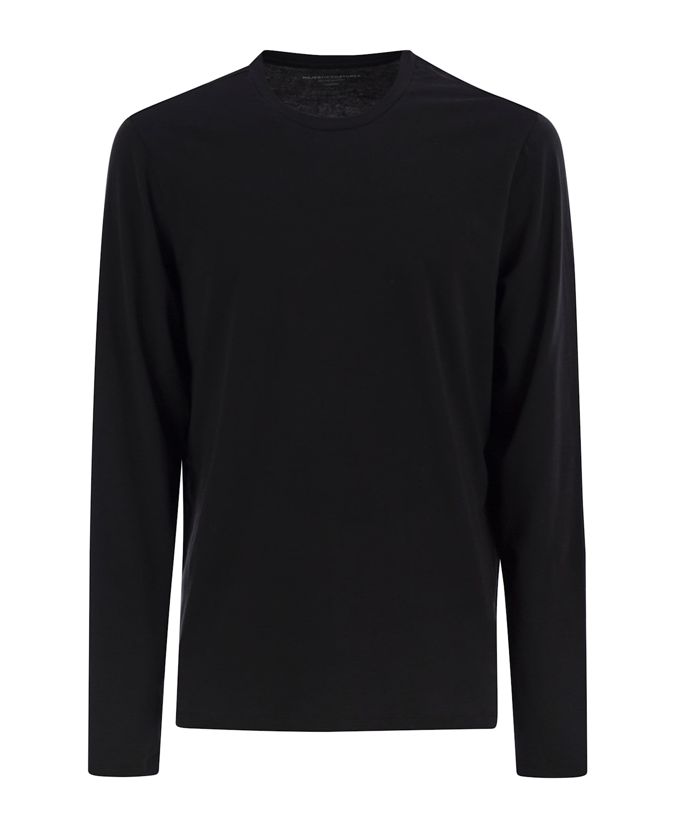 Basic crew-neck T-shirt with long sleeves and slim fit: a simple and versatile passepartout garment. The cotton and elastane composition makes this shirt precious and comfortable, perfect to be combined with other garments or worn alone for an essential look. An essential and basic material, made precious and luxurious thanks to a special weaving process using only the finest fibres. Cotton is processed with elastane to add extra comfort and softness to the composition. - Long sleeves - Crew neck - Slim fit DESIGNER ID: S25M090HTS020 002