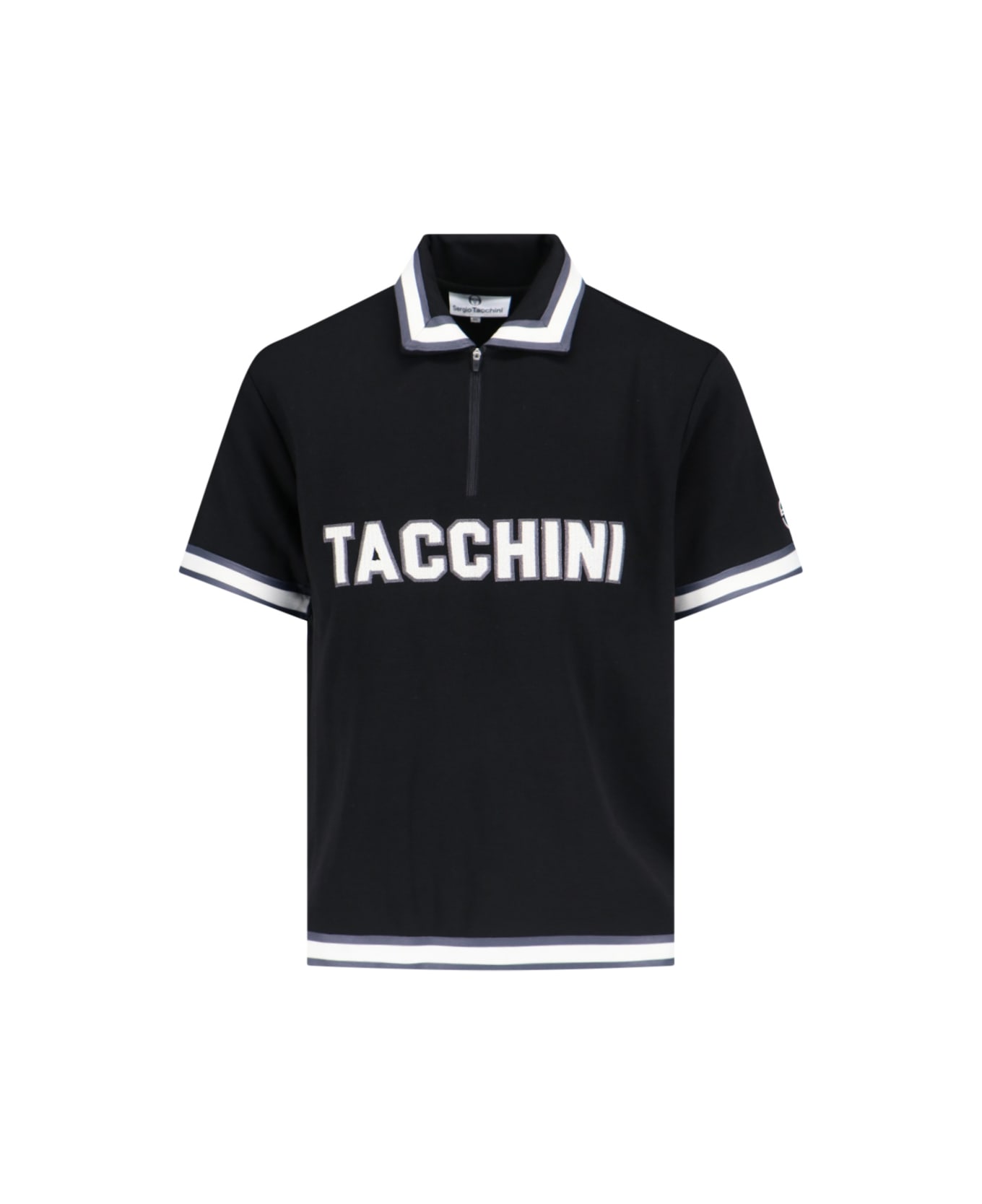 Sergio Tacchini "Tito" polo shirt in black fabric, half neck, front zip, front logo embroidery, gray and contrasting details, side "ST" logo embroidery, contrast finishes, straight hem.