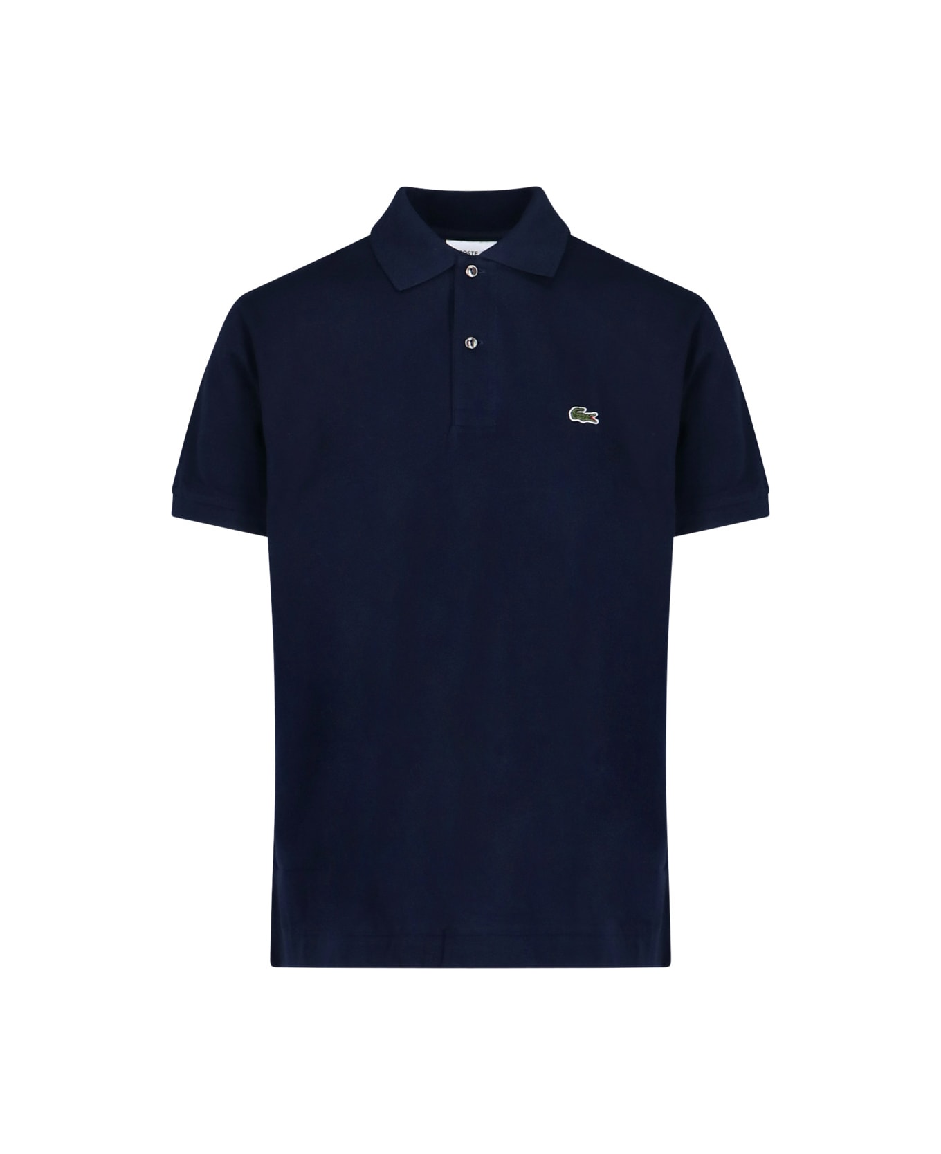 Polo "L. 12. 12" Lacoste in blue cotton, navy shade, collar, button closure, short sleeves, multicolor logo patch on the front, straight hem.