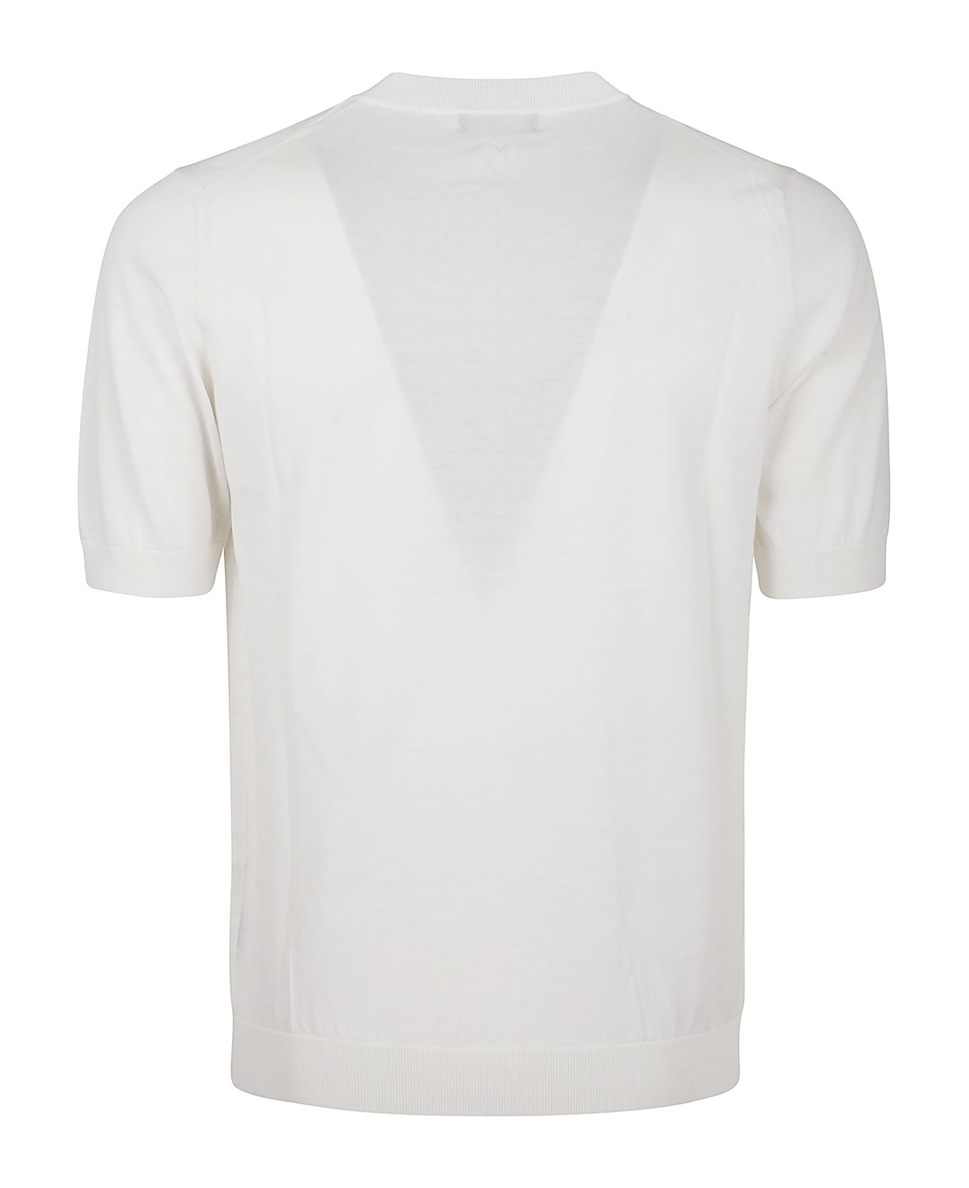 t-shirt in thin cotton yarn with half sleeves above the elbow and knitted edge in the finishes